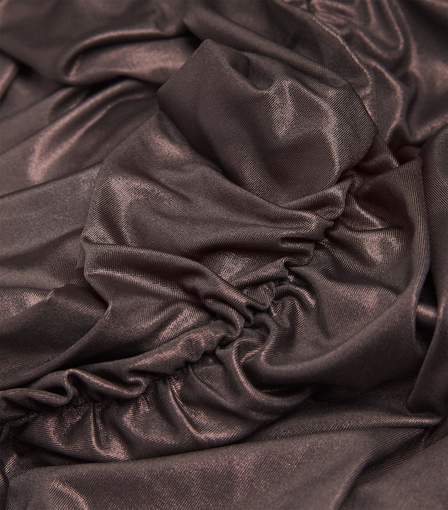 „Weniger ist mehr“ – diese Philosophie vertreten viele Modehäuser, doch LAPOINTE geht einen anderen Weg und konzentriert sich auf Textur, fließenden Fall und monochrome Eleganz. Dieses metallisch schimmernde Maxikleid verkörpert diese Vision: Raffungen in der Mitte betonen die Figur, und der asymmetrische One-Shoulder-Ausschnitt verleiht ihm eine lässige Eleganz.