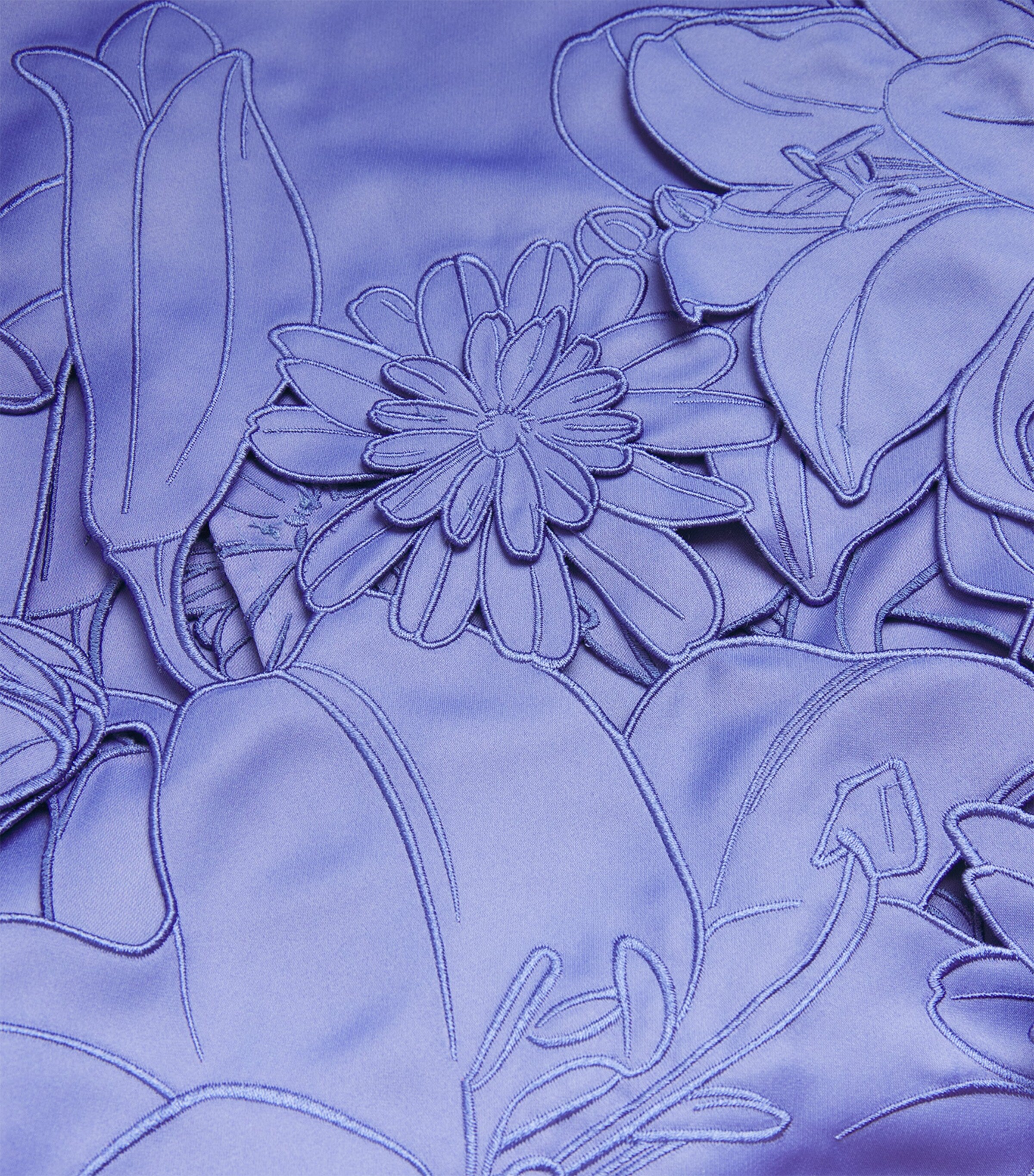 LEO LIN Blaues Caroline Midikleid mit Blumenapplikationen