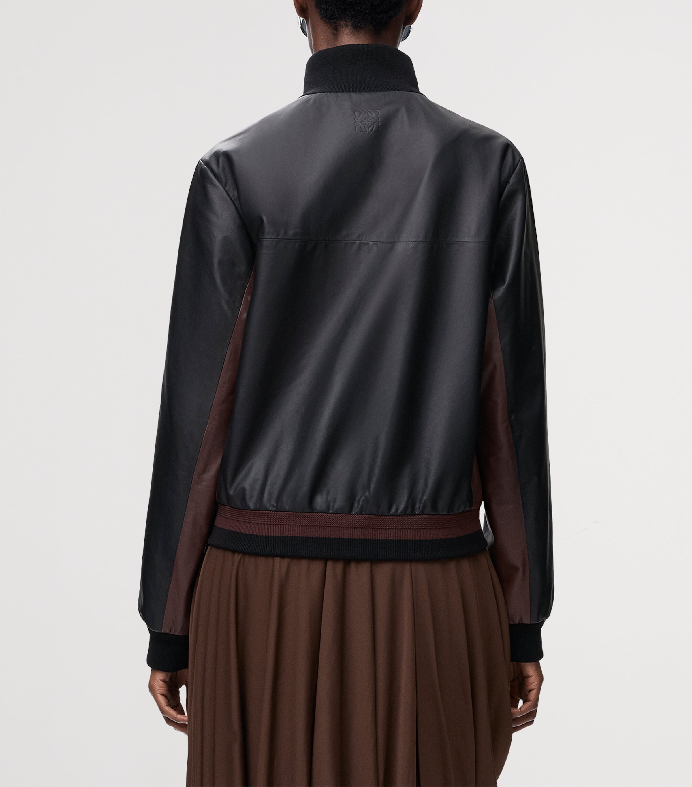 LOEWE Schwarze Lederjacke (kurze Ausführung) - schwarz/burgunderrot / 36 FR