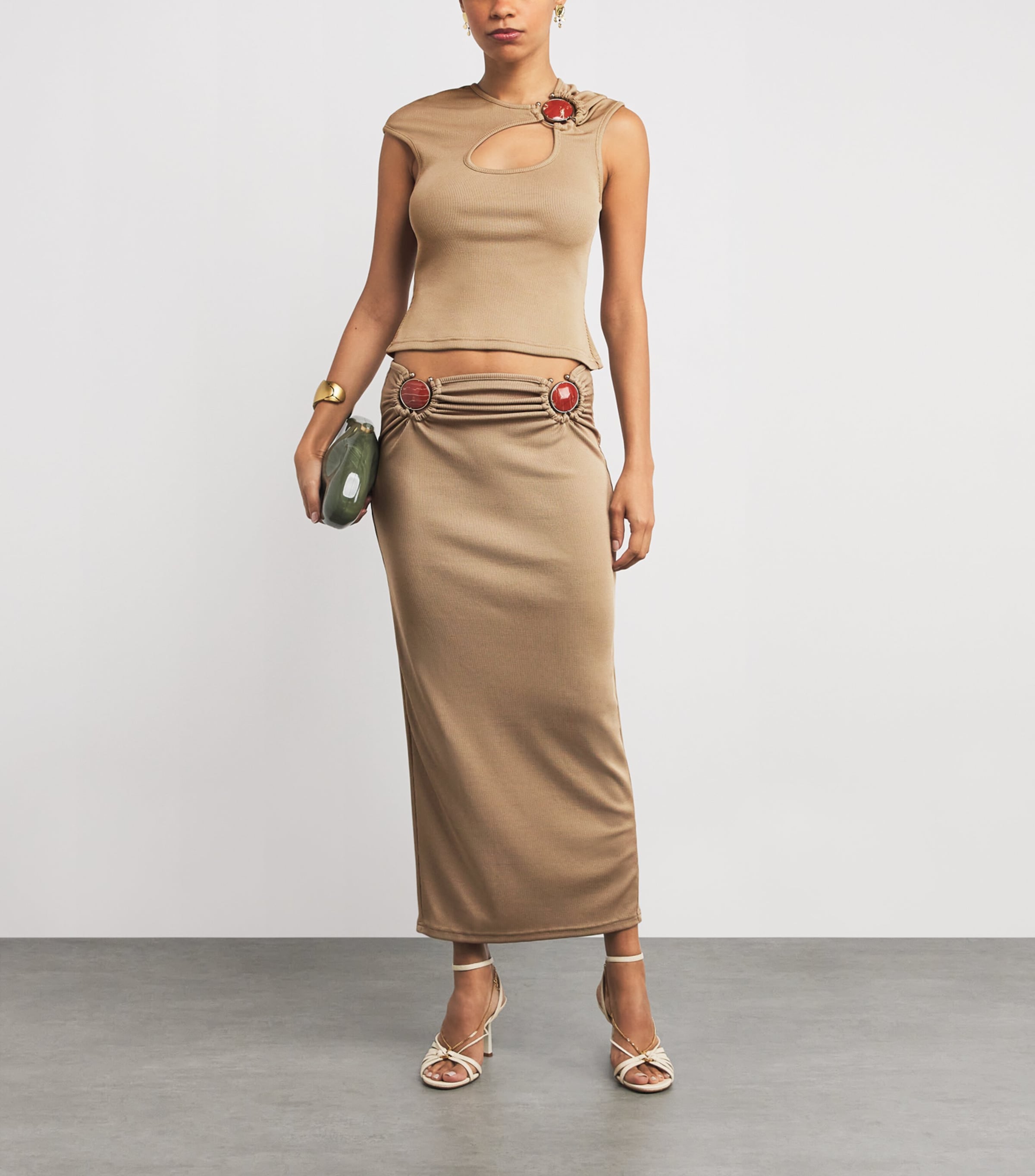 T-Shirt mit Mineralstein-Detail und Cut-Outs - Sand / 10 US