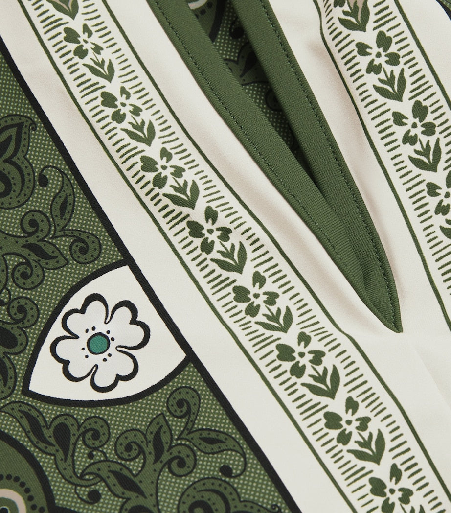 Die Hollywood-Ikone der 80er-Jahre und Fitnessvideo-Wunder Jane Fonda inspirierte den Fonda-Badeanzug von La DoubleJ. Das sportliche Design mit Neckholder-Ausschnitt und dem handplatzierten Mirage-Print verleiht ihm eine ansteckende Energie. Besonders hervorzuheben ist der Schlüssellochausschnitt am Dekolleté, ein Detail, das durch aufwendige Stickereien hervorgehoben wird.
