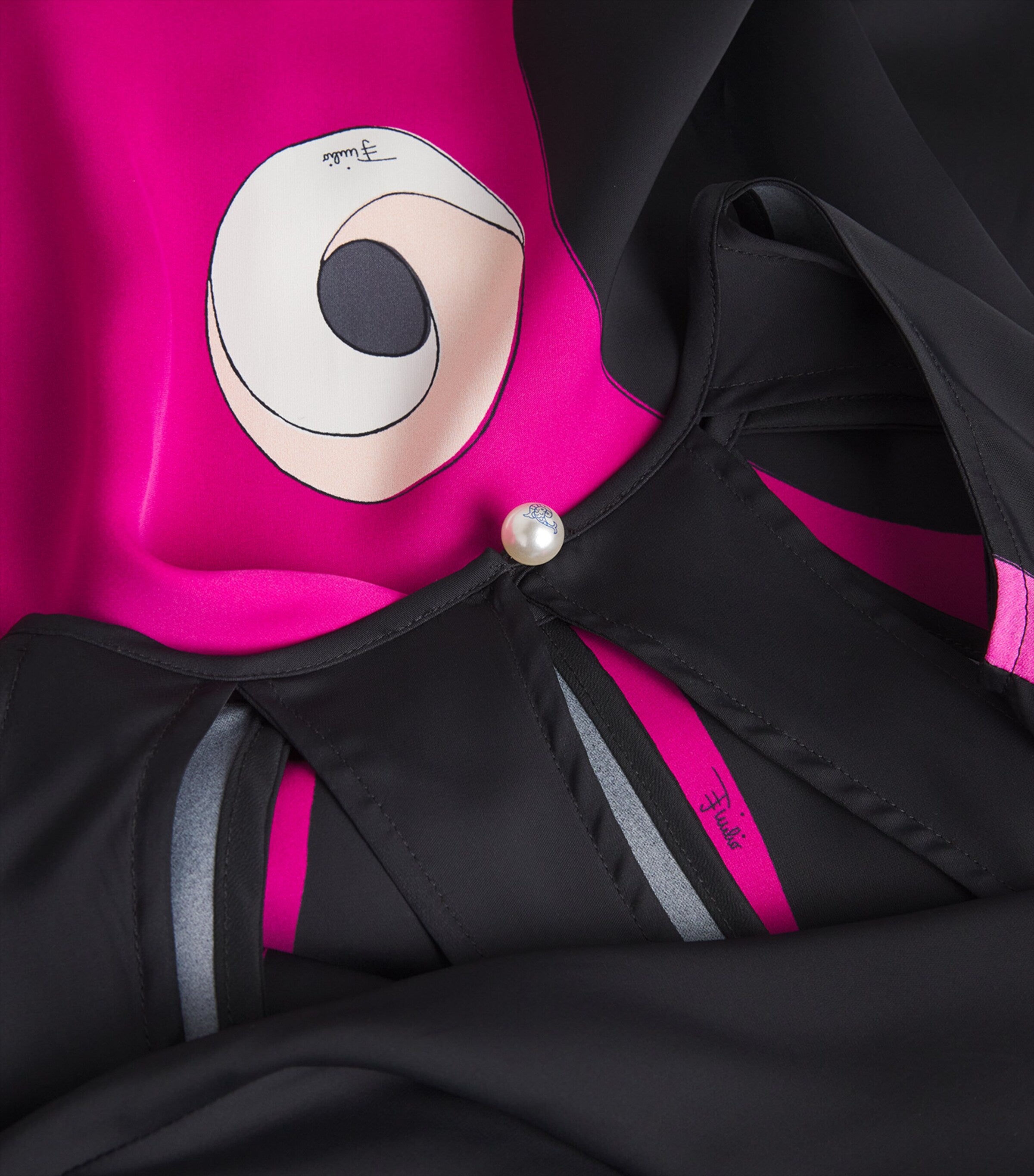 Die Motive auf diesem Kaftan sind eine dekonstruierte Hommage an Sonne, Mond und Sterne.