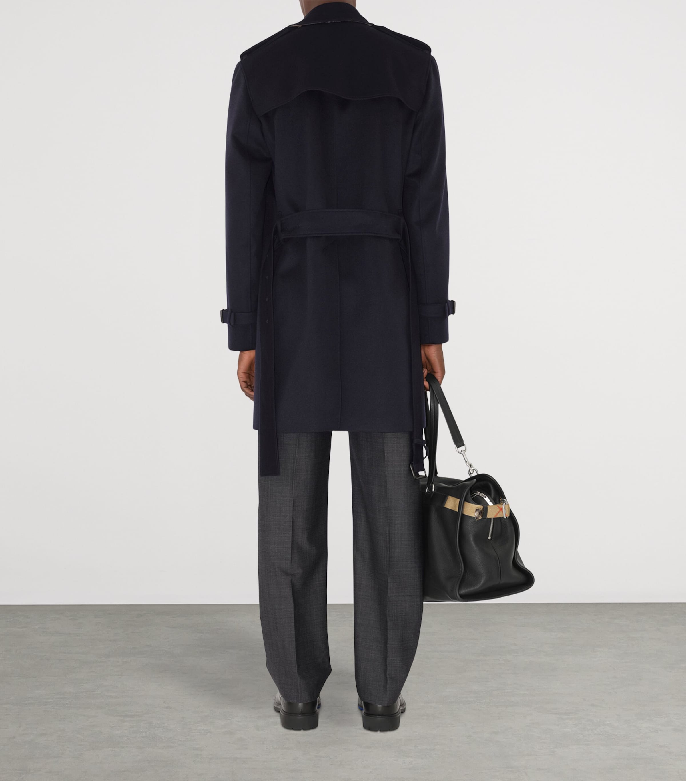 Marineblauer Kaschmir-Trenchcoat in mittlerer Länge