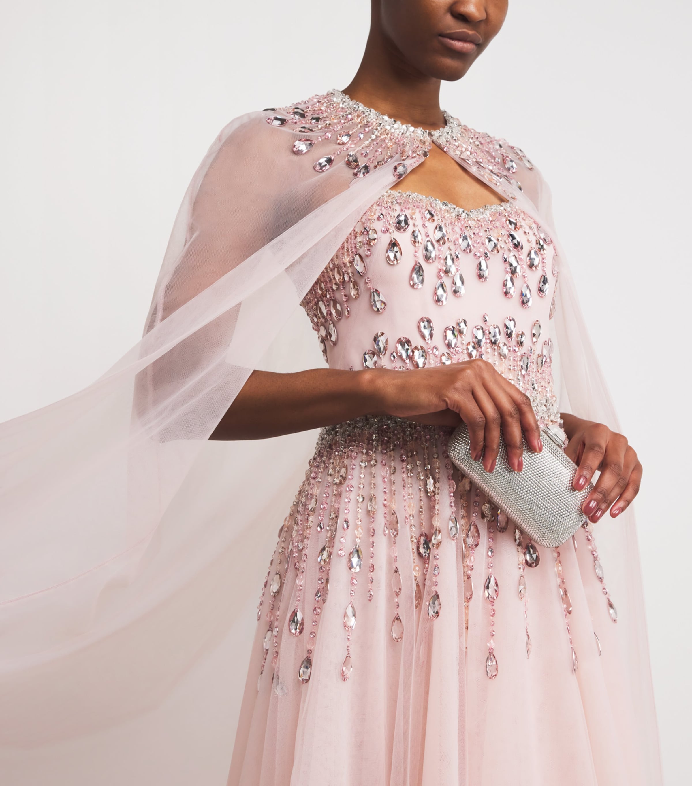 Pamella Roland Kleid aus rosa Tüll mit Cape-Details