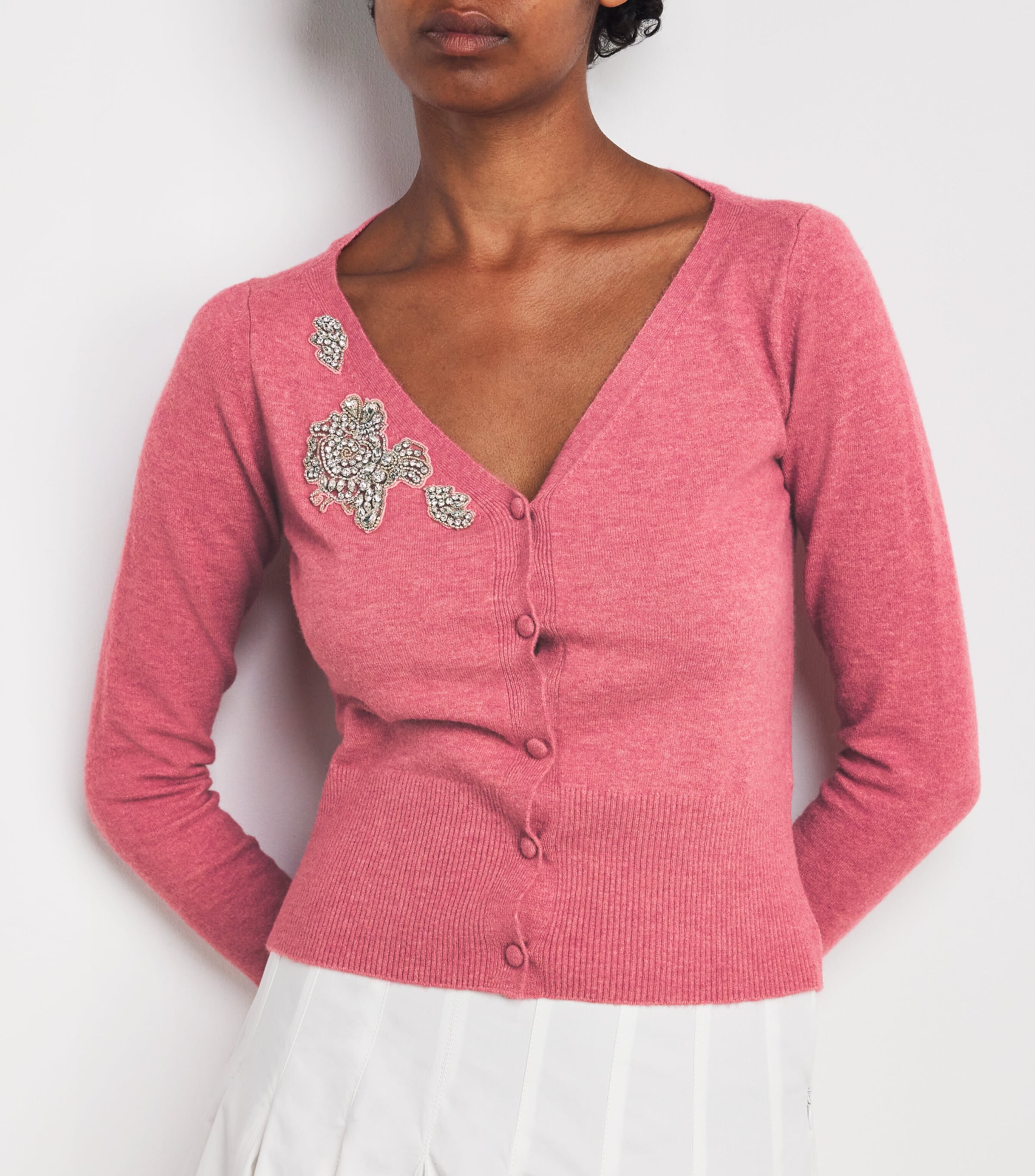 Rosa, verzierter, kurzer Cardigan - Rosa / S