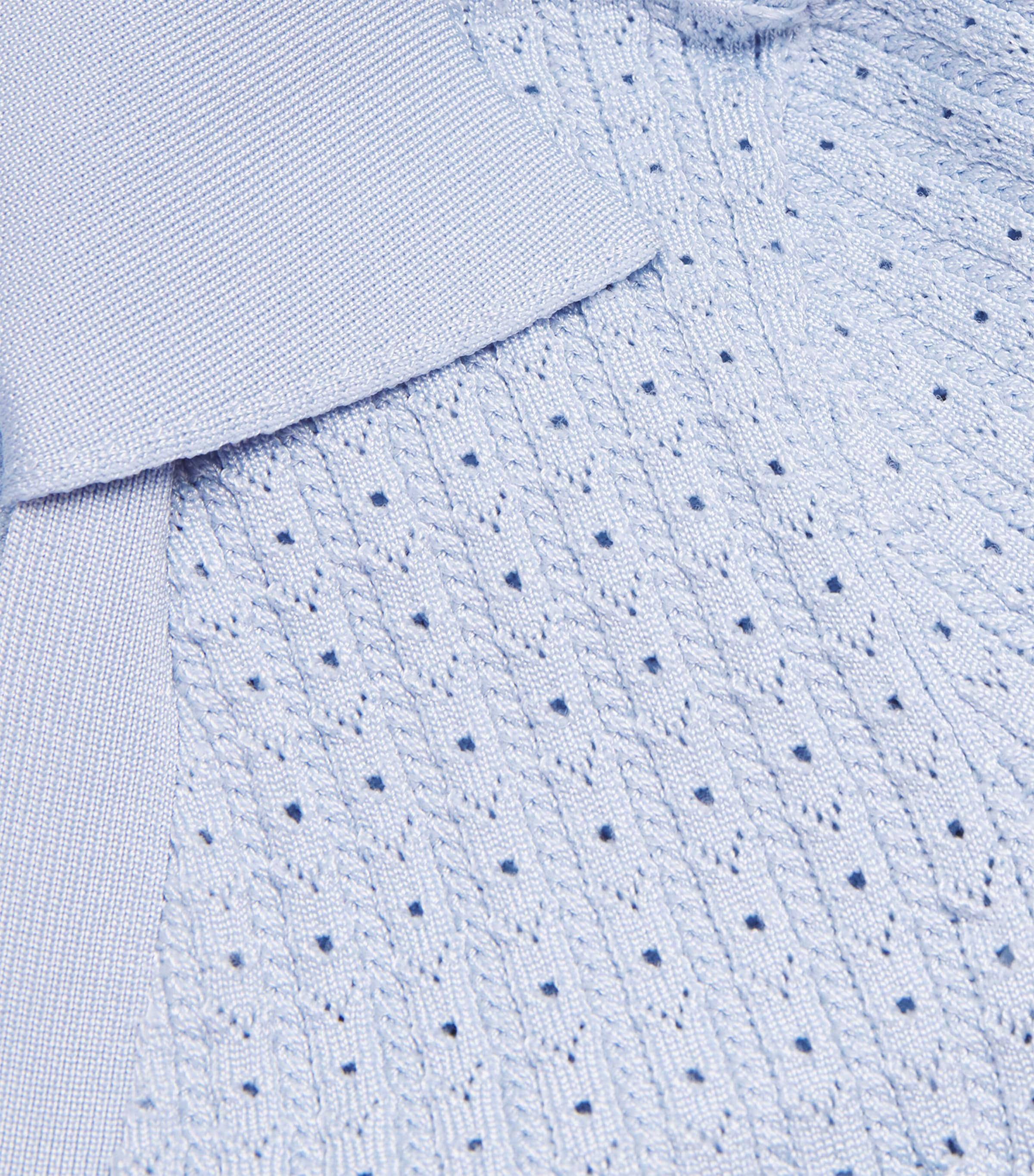 Selbstporträt Blaues Pointelle-Strickminikleid