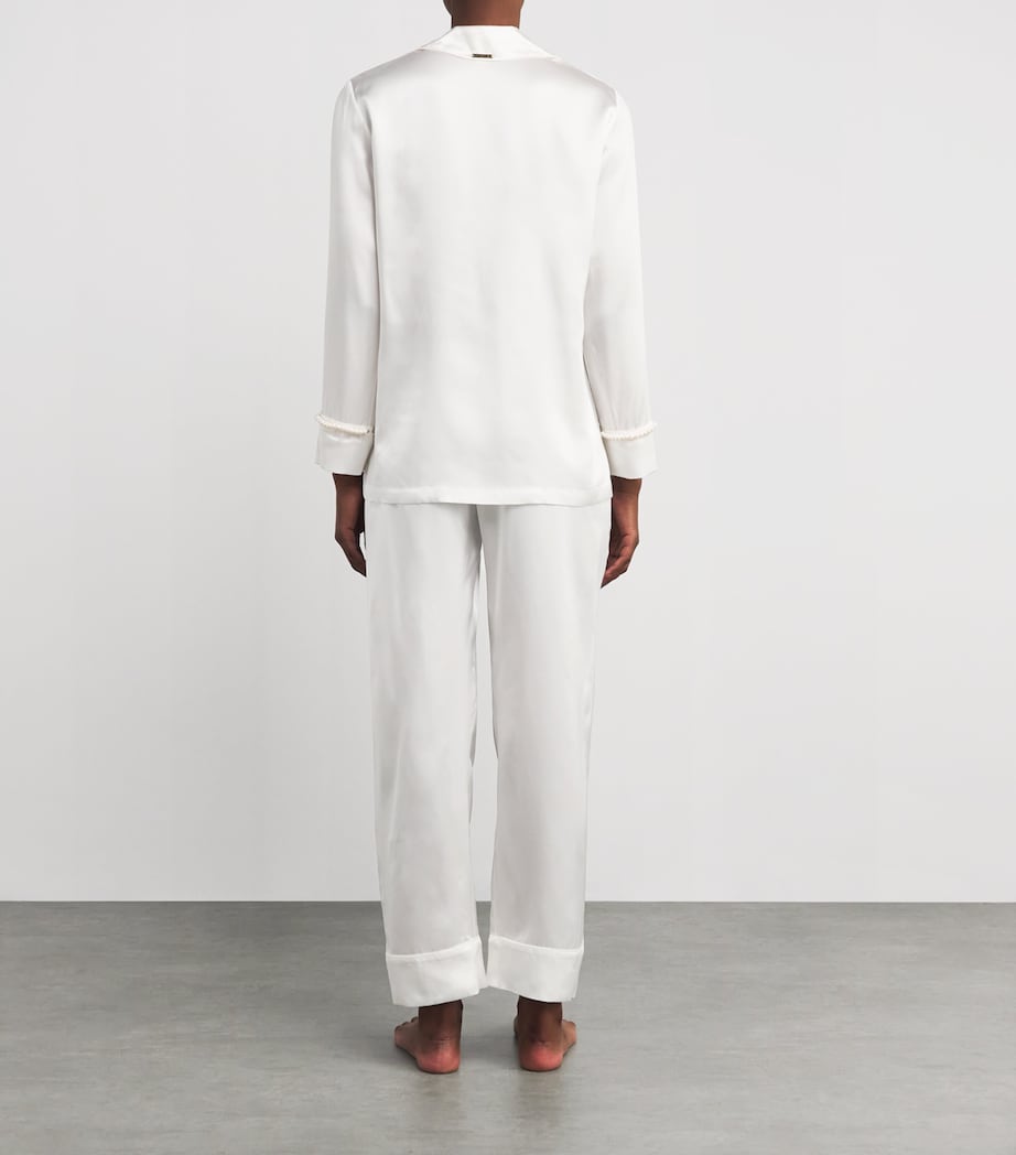 Seidenpyjama-Set „Girls Love Pearls“ in Elfenbein