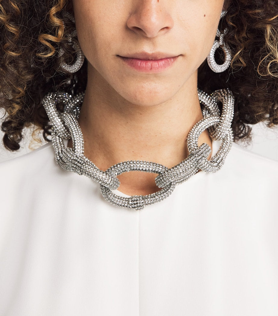 Stella McCartney setzt mit diesem Jumpsuit auf elegante Linien. Gefertigt aus umweltfreundlichem Satin – ganz im Sinne der ethischen Philosophie der Marke – besticht dieses Modell durch meisterhaft geschnittene Ärmel, die in eine weite Beinform übergehen. Die schlichte Silhouette lässt den mit Kristallen besetzten Kettenkragen voll zur Geltung kommen und verleiht dem Jumpsuit eine brillante Ausstrahlung, die für sich spricht.