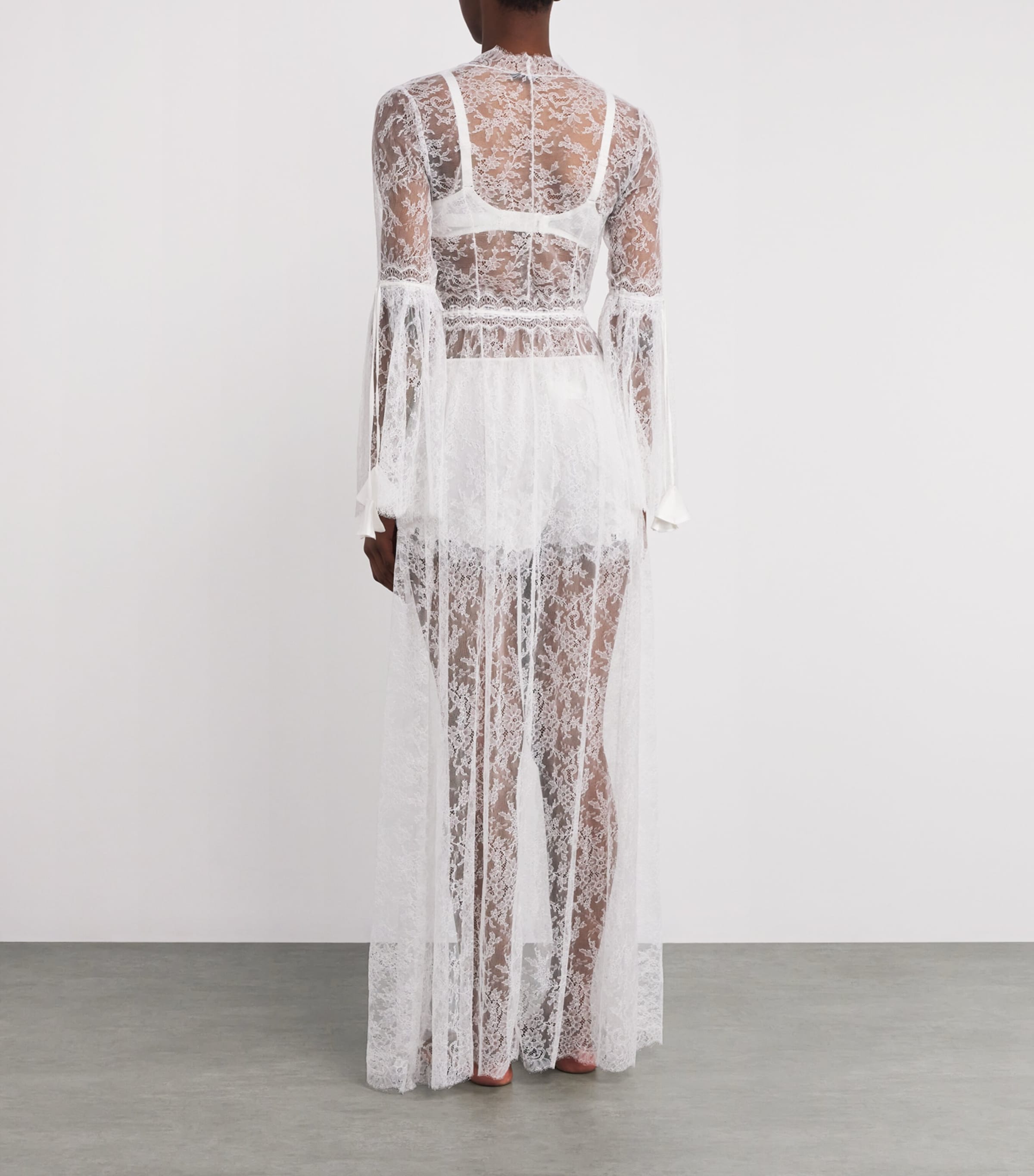 Hüllen Sie Ihren Körper in federleichte Spitze mit dem Morgenmantel Marcella von TORLOWEI. Dieses zarte Kleidungsstück ist ein Paradebeispiel für den Anspruch des Labels, von Lingerie inspirierte Konfektionsmode zu kreieren. Der halbtransparente Stoff, die Satinborten und die fließenden Ärmel verleihen ihm eine ausgesprochen romantische Note.