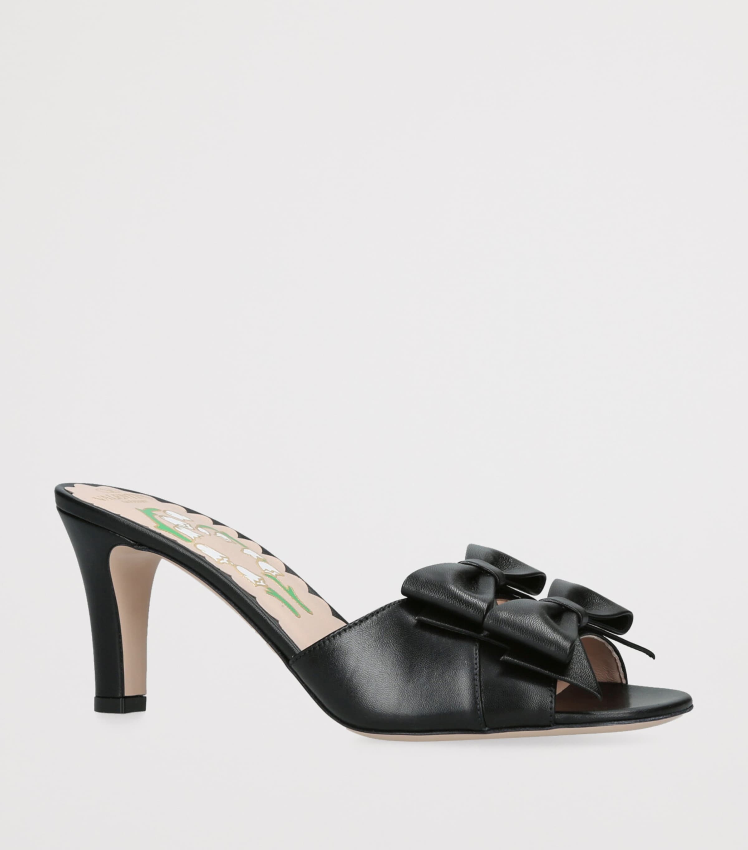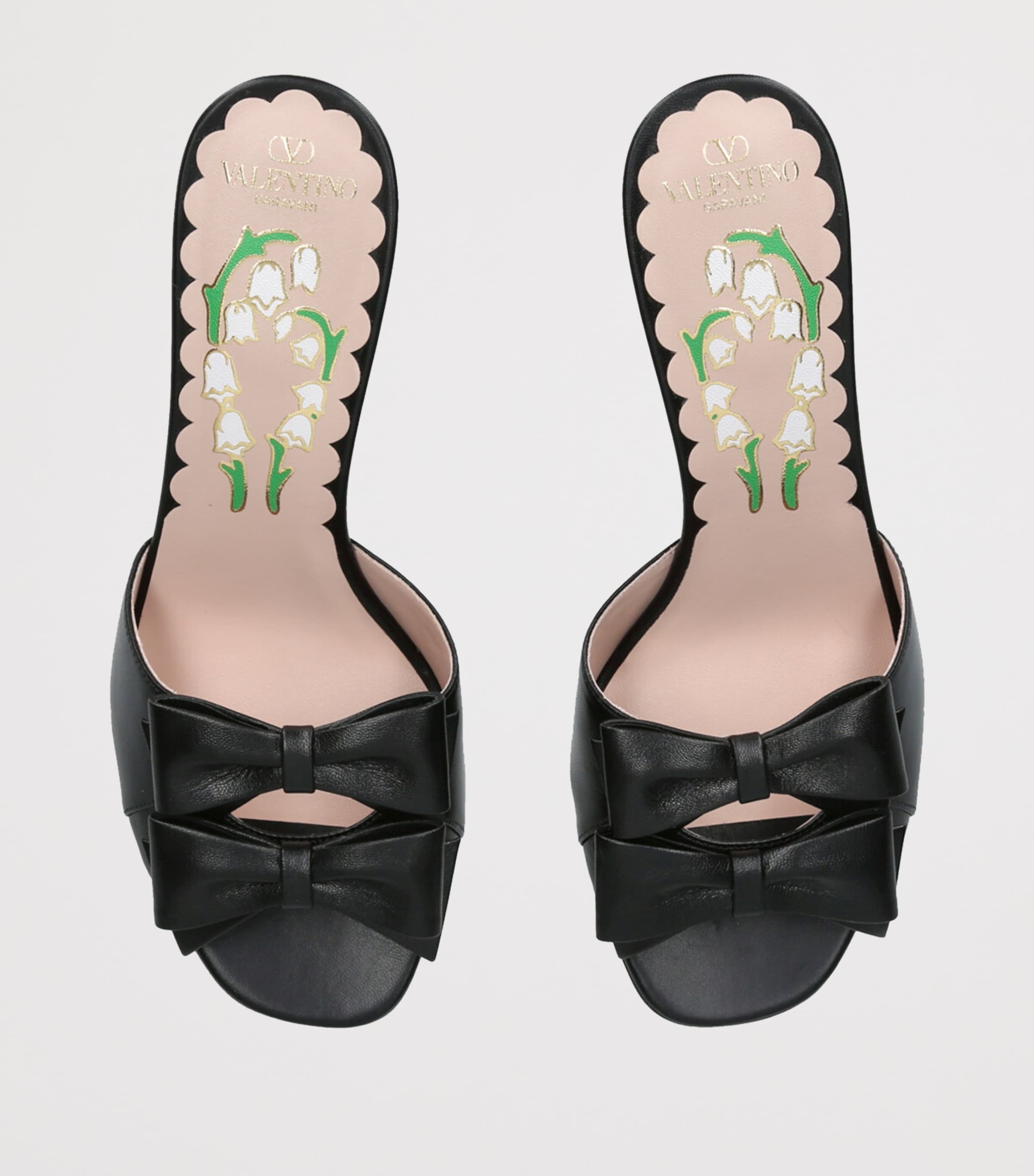 Valentino Garavani Schwarze Leder-Mules mit Schleifendetail, Größe 75