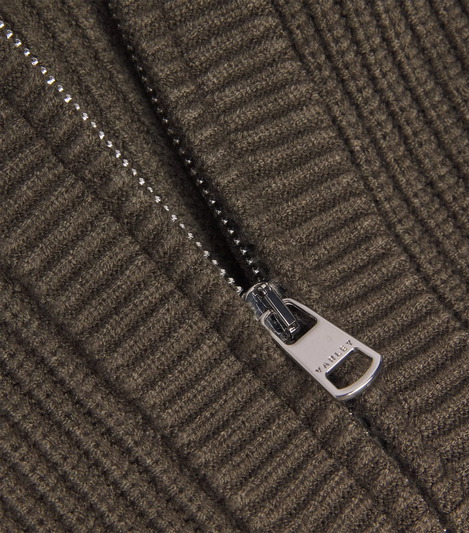 Varley Brauner gerippter Maura-Pullover mit halbem Reißverschluss