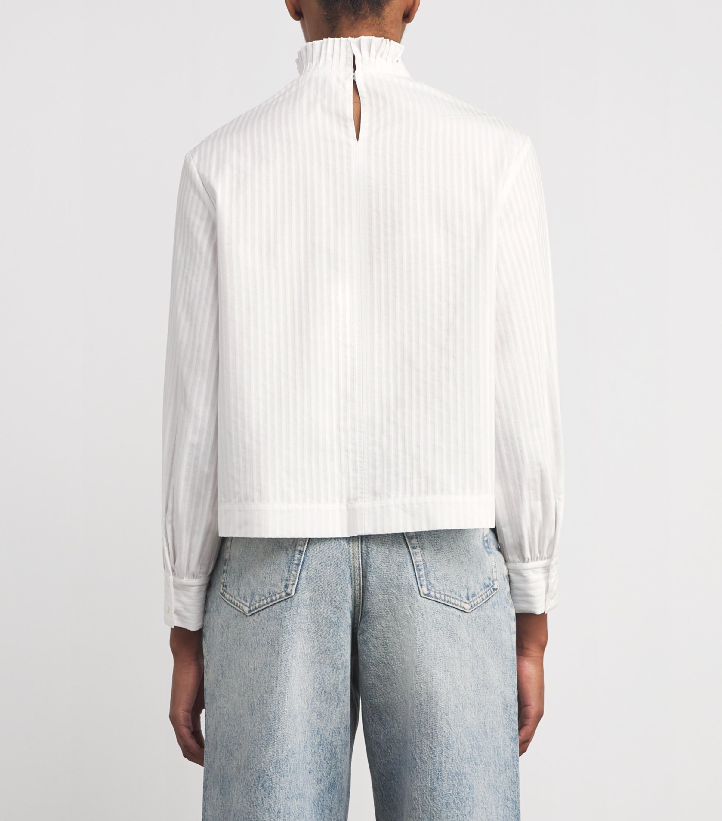 Weiße Baumwollbluse mit Rüschenkragen - Weiß / 34 FR