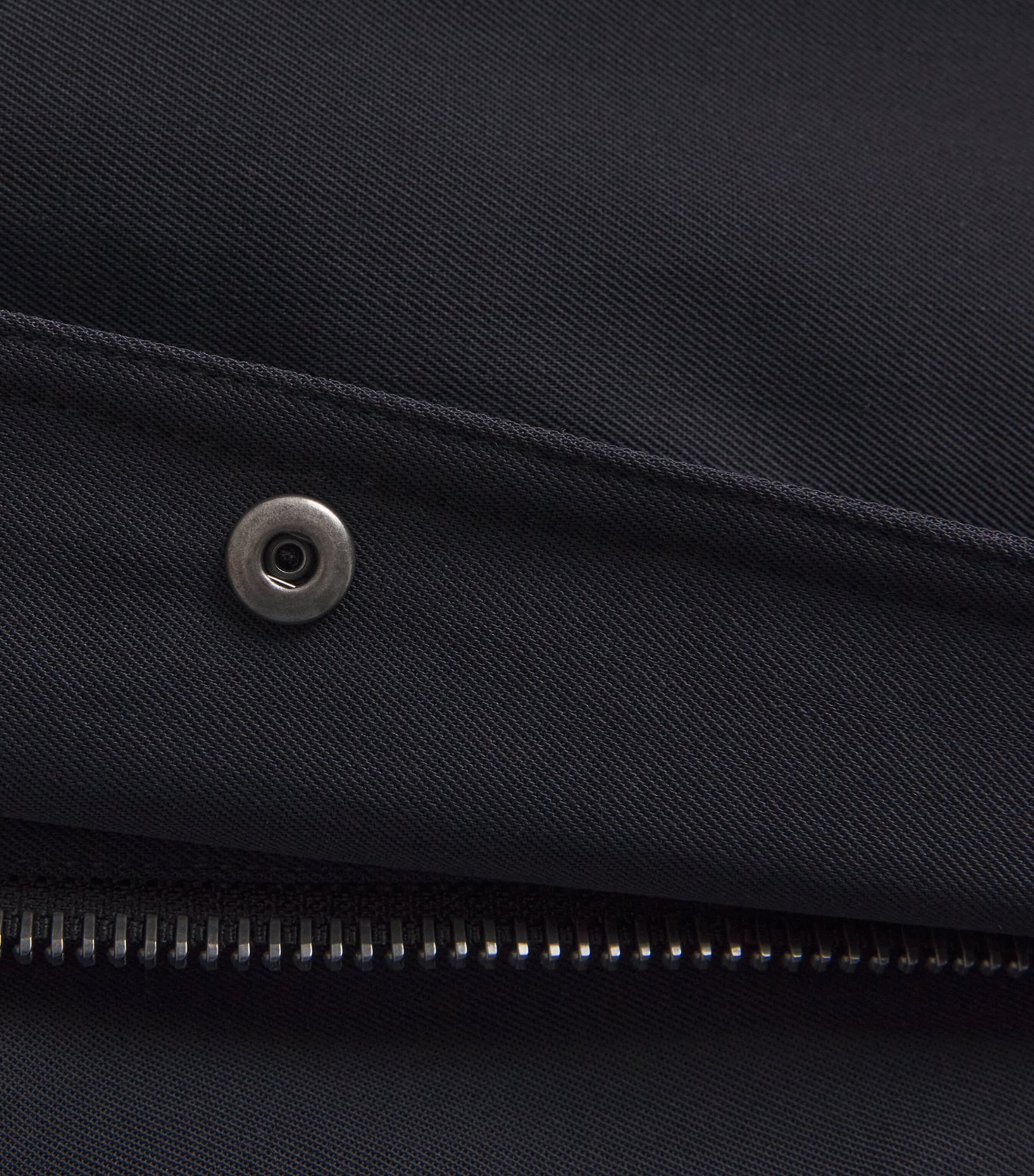 Die Herrenmode von Yves Salomon zeichnet sich oft durch minimalistische, reduzierte Silhouetten aus, die gänzlich auf Markenlogos verzichten und stattdessen die exquisite Stoffauswahl und das technische Know-how in den Vordergrund stellen. Dieser kurze, von Bomberjacken inspirierte Parka beispielsweise ist aus einem wasserdichten, weichen Schurwollmischgewebe gefertigt und mit großzügigen Kammern aus isolierenden Daunen gefüllt. Das markentypische Shearling verleiht dem Kapuzenfutter eine angenehme Haptik und sorgt für ein wärmendes Tragegefühl.
