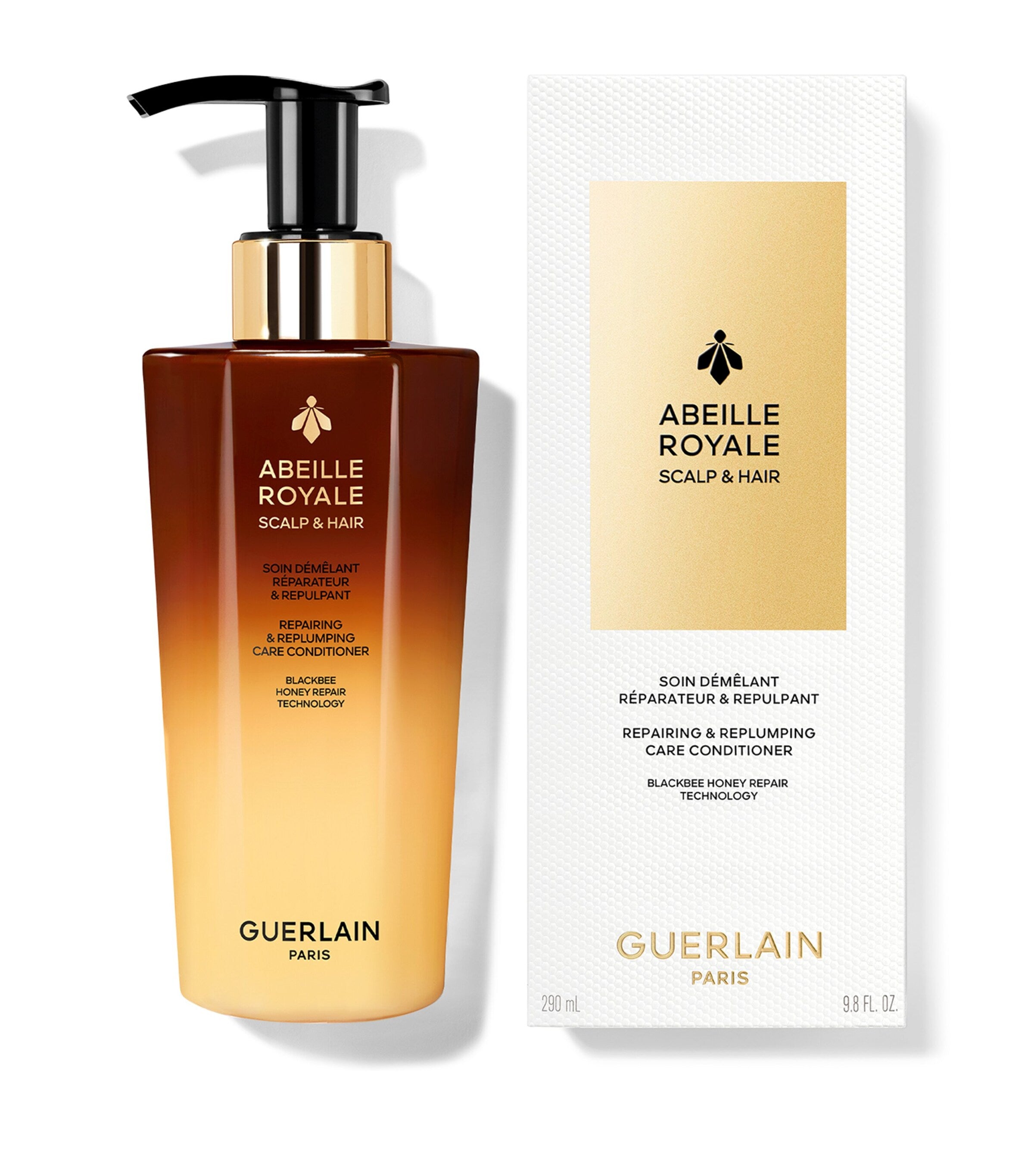 Guerlains Abeille Royale Repairing & Replumping Care Conditioner besticht durch seine reparierende Formel mit stärkenden Inhaltsstoffen. Er enthält die innovative Dynamic Blackbee Repair Technologie und Honig schwarzer Bienen von der Insel Ouessant. Die sanfte Textur erinnert an Gelée Royale und pflegt trockenes Haar, während es sichtbar voller wirkt.