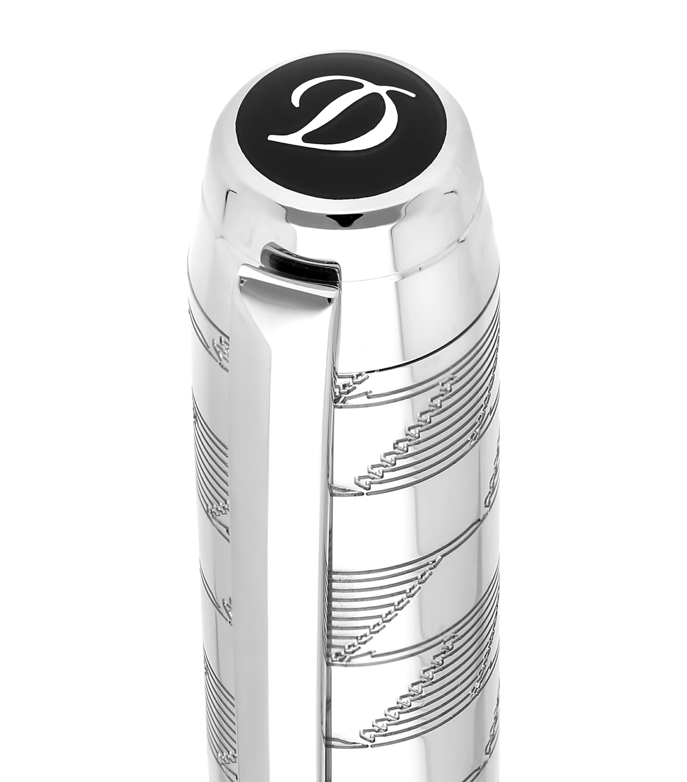 S. T. Dupont's Monogram 1872 collection draws inspiration from the timeless aesthetics of the '50s, recalling the pattern of a ridged guilloche from the brand's archives in a range of lighters, pens and accessories. Here, it details the Line D Eternity ballpoint pen, an iconic functional accessory of its own, with intricately engraved grooves and planes – a testament to the brand's exquisite craftsmanship.