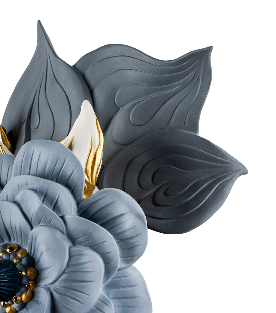 Lladró Porcelain Vase with Flowers Figurine (44cm) - white & blue / OS