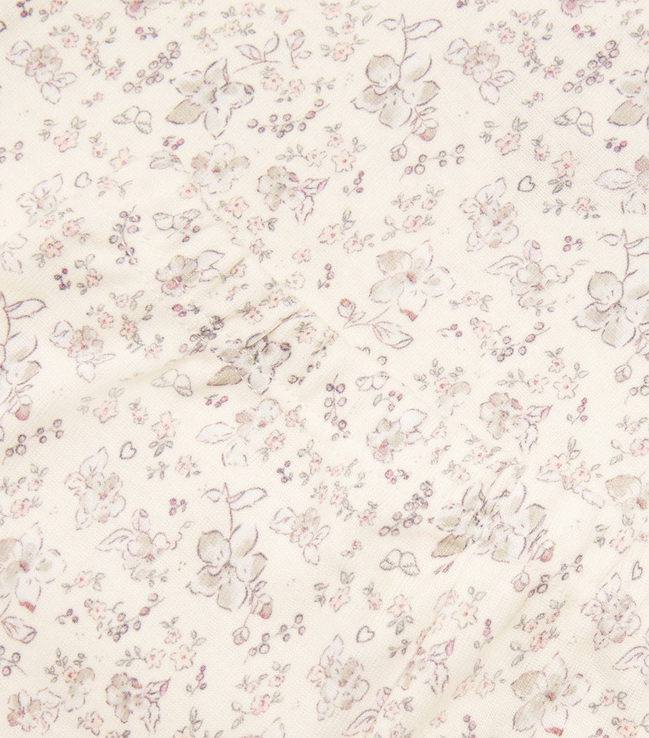 Der Blumendruck hat eine illustrative Qualität, die an Kinderbücher erinnert.