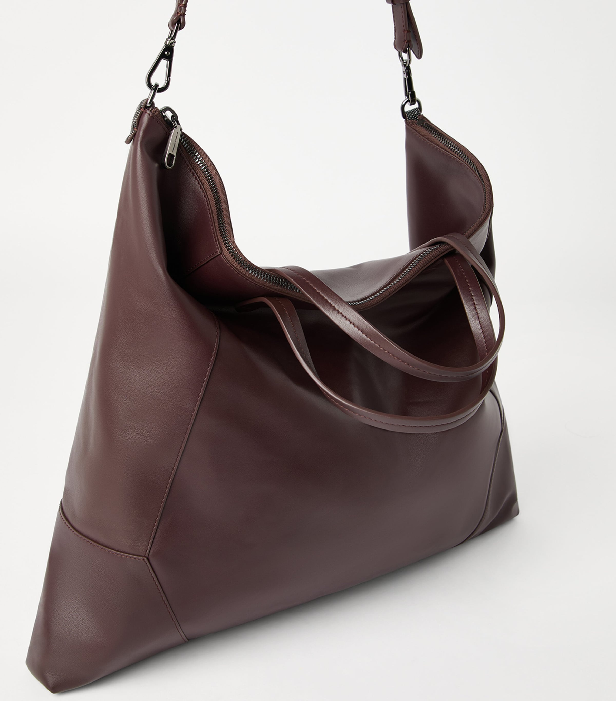 A Brunello Cucinelli signature, the BC Duo bag is reimagined season after season. This time, it's inspired by retro influences, shaped from soft leather to a shopper style, complete with a functional zip fastening and an adjustable strap. Of course, it also features the brand’s monili trim which adds a touch of sparkle to an otherwise minimal design.