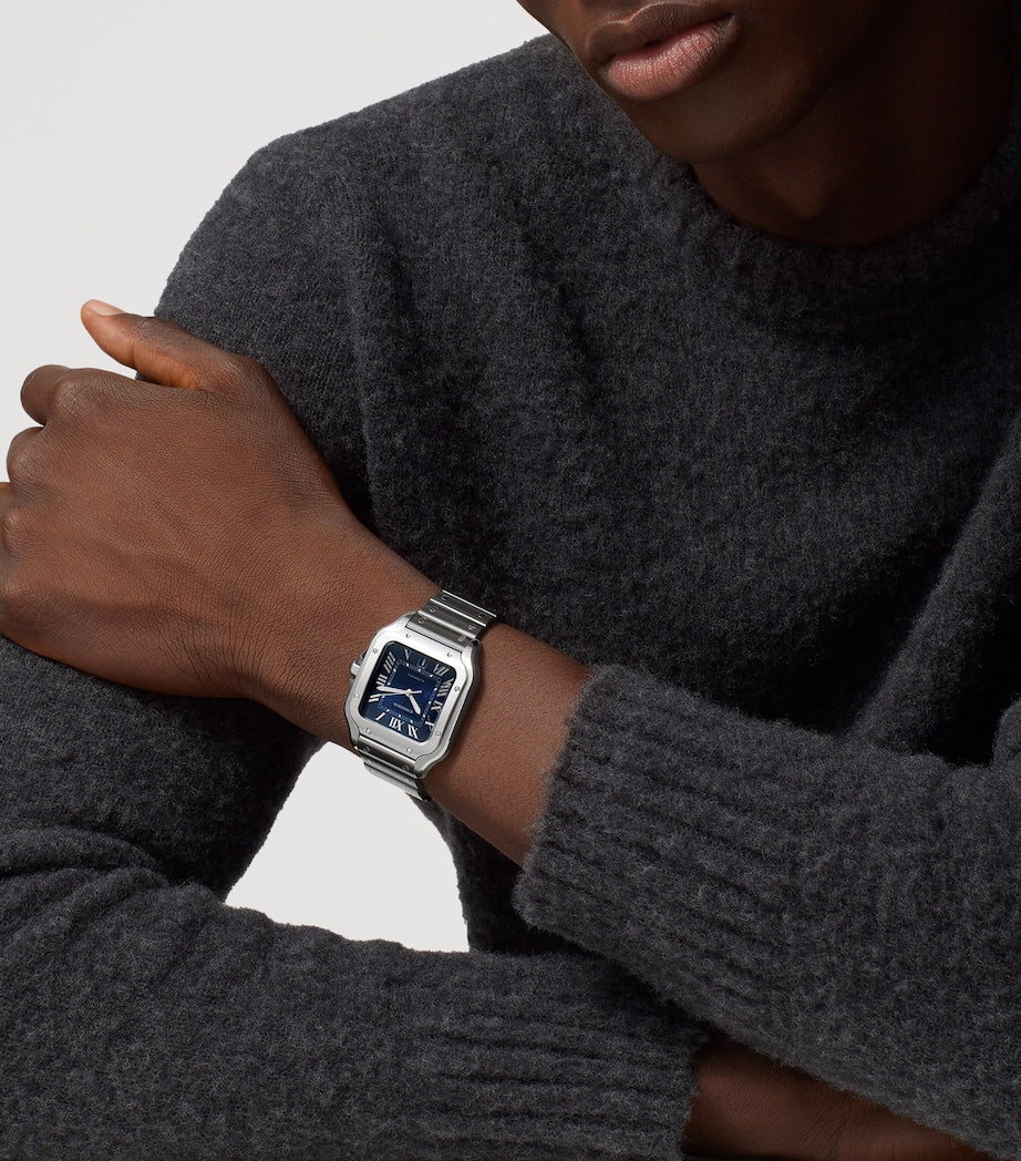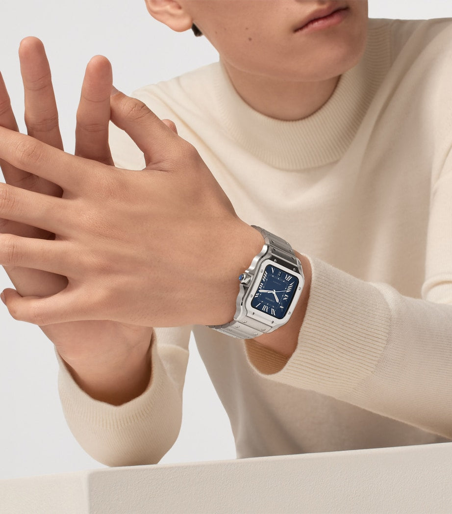 With its timeless appeal, this watch will carry your legacy for generations to come. The Santos de Cartier watch was first designed by Louis Cartier in 1904 to help Alberto Santos Dumont record time while in the air – something which, at the time, was almost impossible. One of the very first wristwatches ever made, the exquisite timepiece is still just as popular over a century on, with contemporary iterations like the one above carrying its legacy into a new era. This large steel rendition comes with an additional blue alligator skin strap designed with the QuickSwitch interchangeable system, allowing you to effortlessly change your look to suit any occasion.