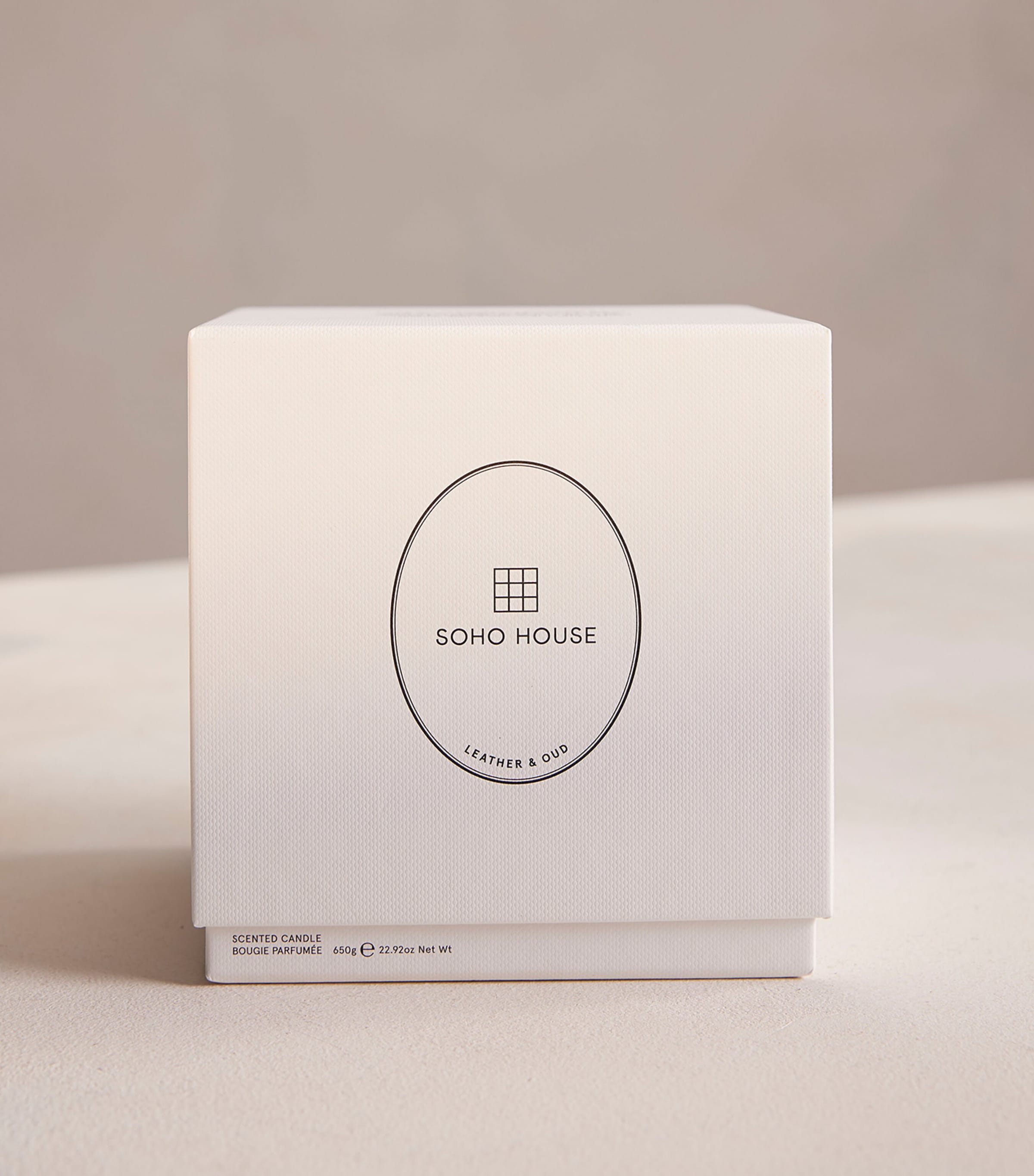Presented in the Forest Green reusable marble vessel, the Leather & Oud candle by Soho Home provides a smoky, aromatic fragrance infused with rich, woody notes of oud and patchouli above a warm base of sandalwood. Every marble container is unique thanks to its carved quality and unique veining, ensuring your home retains its individuality.
