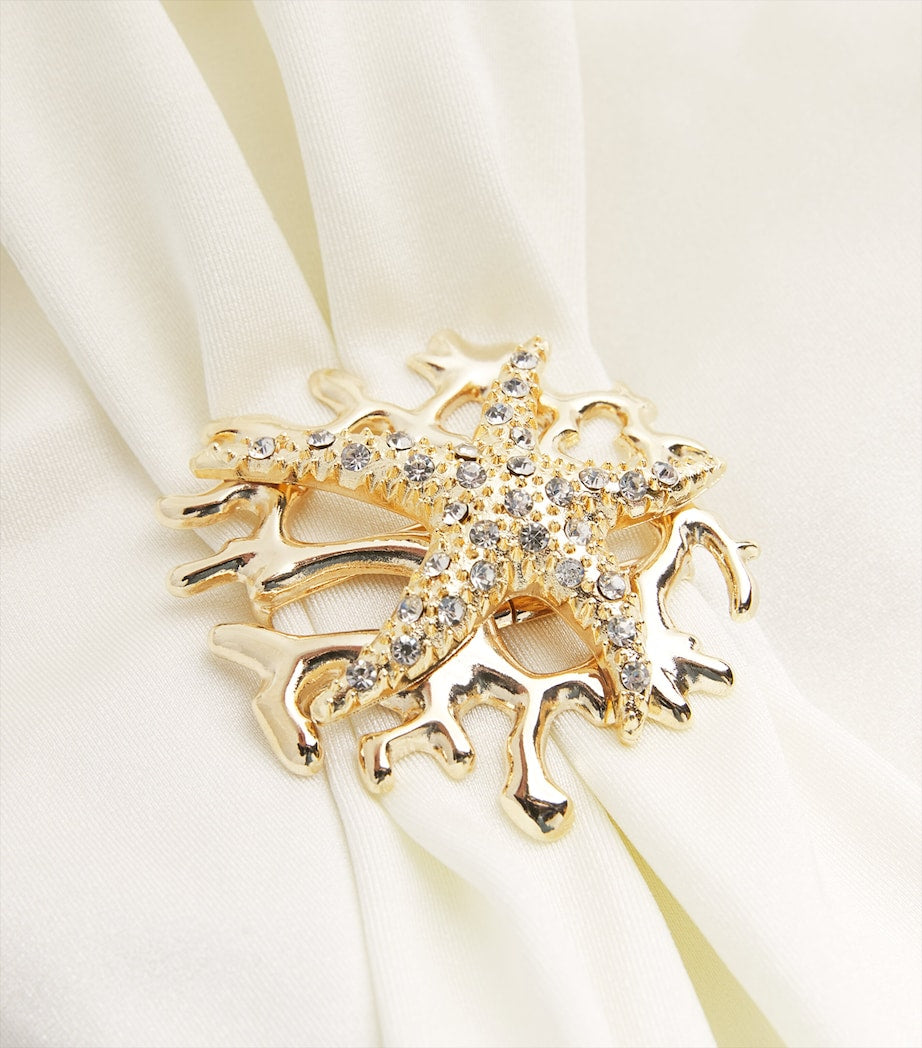 Das Design ist kunstvoll um eine glänzende Seestern-Verzierung angeordnet. Die Schönheit Brasiliens ist für PatBO eine unerschöpfliche Inspirationsquelle – und zwar in vielerlei Hinsicht. Das Label rückt nicht nur die spektakuläre Landschaft und die Meeresumwelt des Landes in den Fokus, sondern auch dessen technisches Know-how durch lokal gefertigte Designs wie diese hochgeschnittene Korallen-Bikinihose.