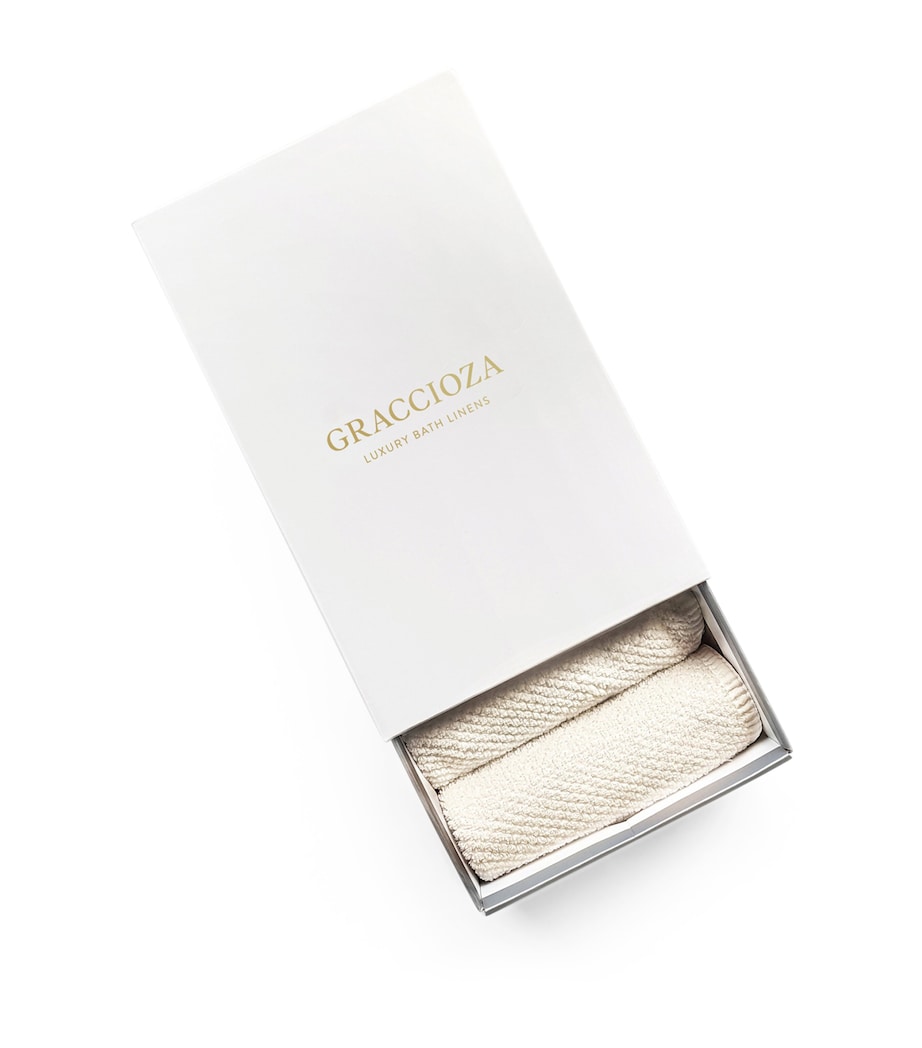 Graccioza’s Bee Waffle collection places the focus on texture with a distinctive honeycomb weave. Its plush, sumptuous feel, however, is not the line’s only calling card: pieces like this set of five washcloths are also crafted from combed cotton and pre-washed and pre-shrunk for greater absorbency, ensuring it wicks away all moisture after an indulgent soak.