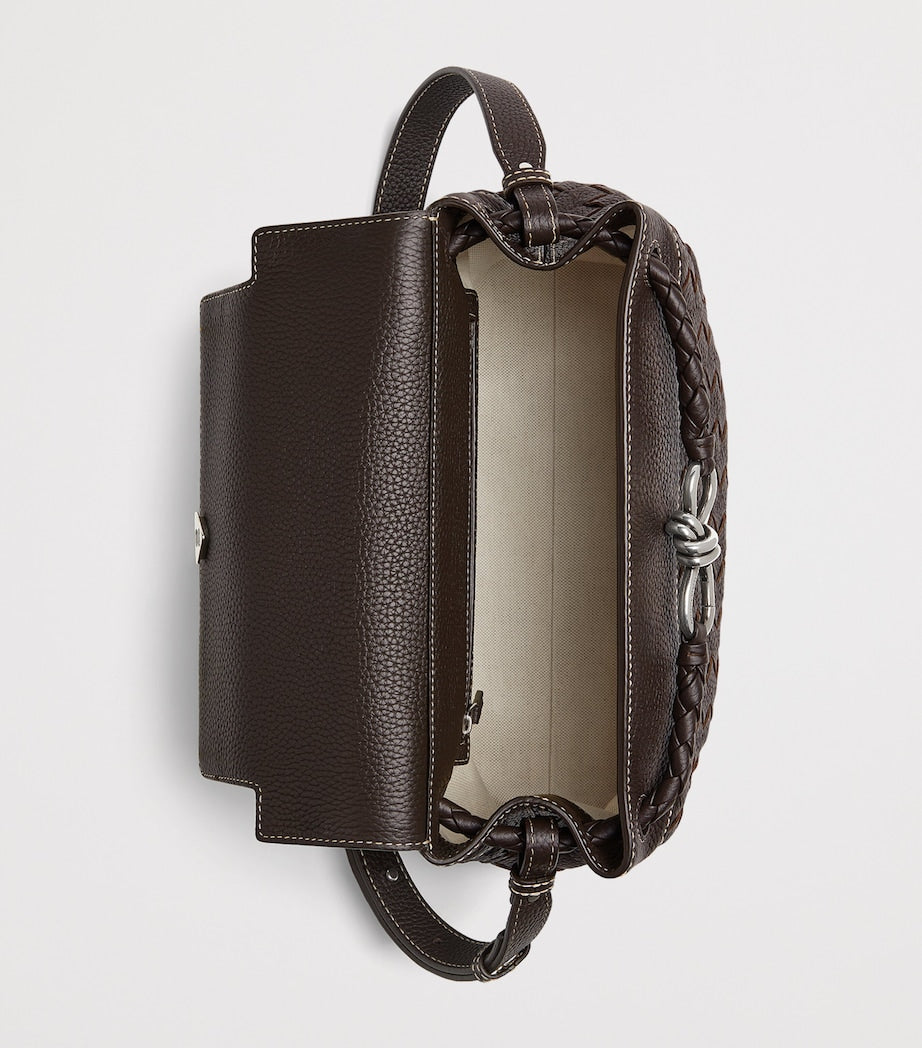 Dank eleganter Taschen wie der Andiamo Messenger Bag ist Bottega Veneta zum Synonym für Raffinesse und handwerkliches Können geworden. Ob quer über dem Körper oder am verschiebbaren, geknoteten Griff getragen, die Intrecciato-Lederpaneele und die glänzenden Knot-Beschläge unterstreichen stets Ihren erlesenen Geschmack.