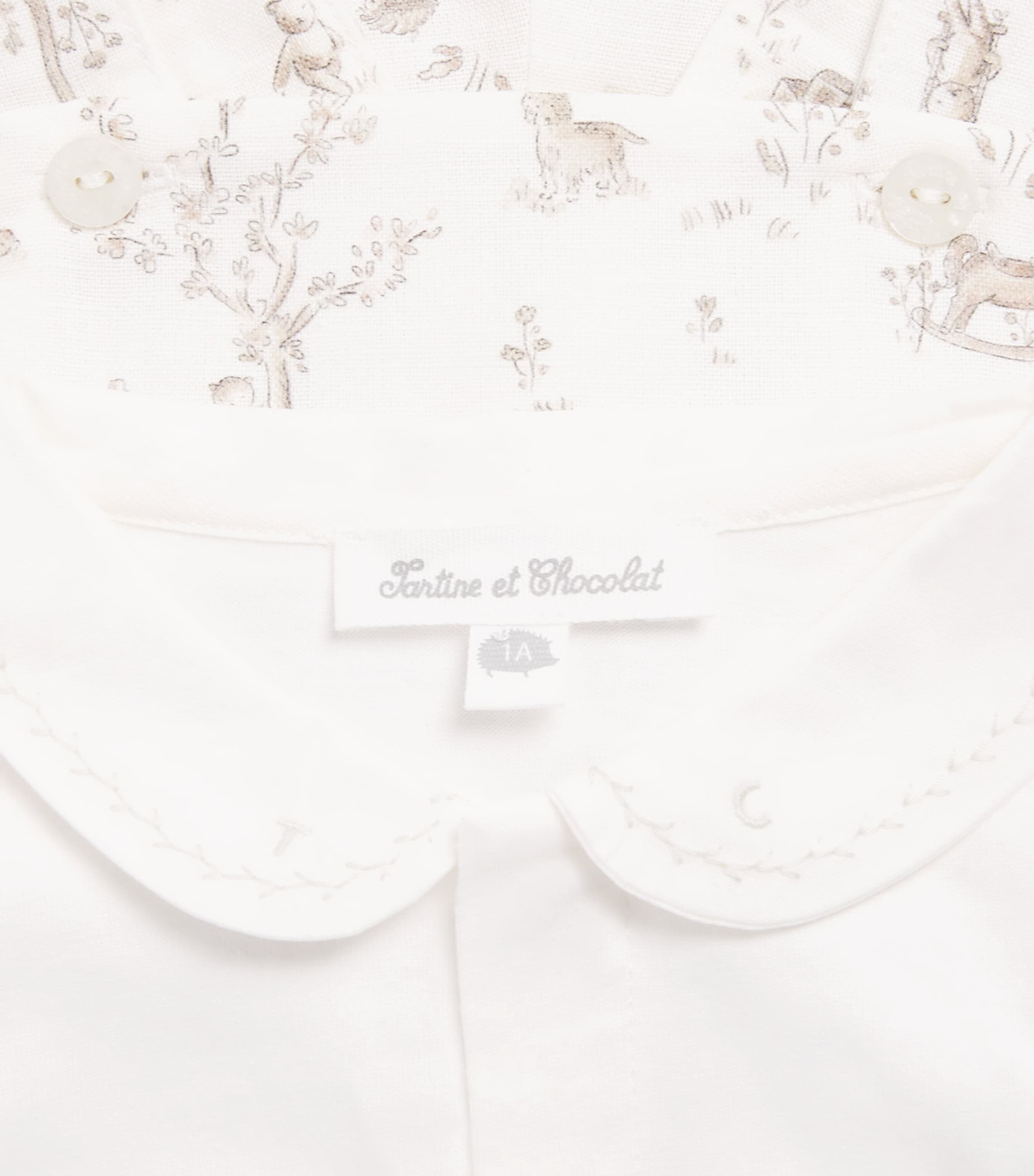 Die Kollektion von Tartine et Chocolat, die französisches Design und portugiesische Handwerkskunst vereint, bietet Ihrem Kind bezaubernden Komfort – so auch dieses Set. Die Latzhose aus Leinen und Baumwolle ist mit einem verspielten Toile-de-Jouy-Muster verziert, das Teddybären, Welpen und Schaukelpferde auf einer Wiese zeigt. Zusammen mit dem weichen Baumwollbody ergibt sich ein entzückendes Ensemble.