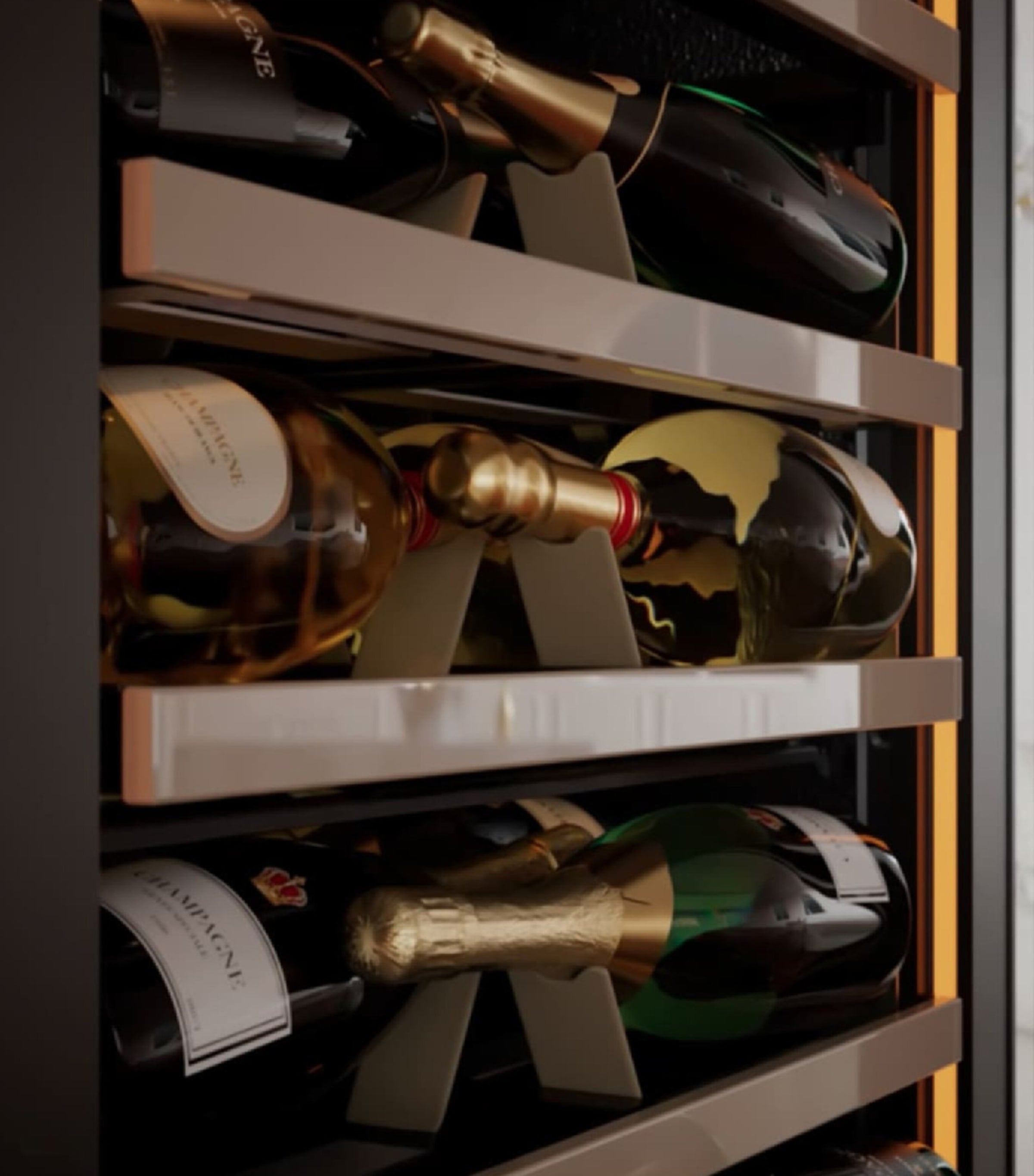 More than a cabinet, this exquisite piece by EuroCave is a tribute to the French art of living, dedicated exclusively to showcasing and serving Champagne with unparalleled elegance. Featuring bespoke shelving that accommodates every bottle shape, soft-close sliding shelves with luxurious leather finishes and customisable ambient lighting, it honours the rich heritage and creativity of Champagne houses.