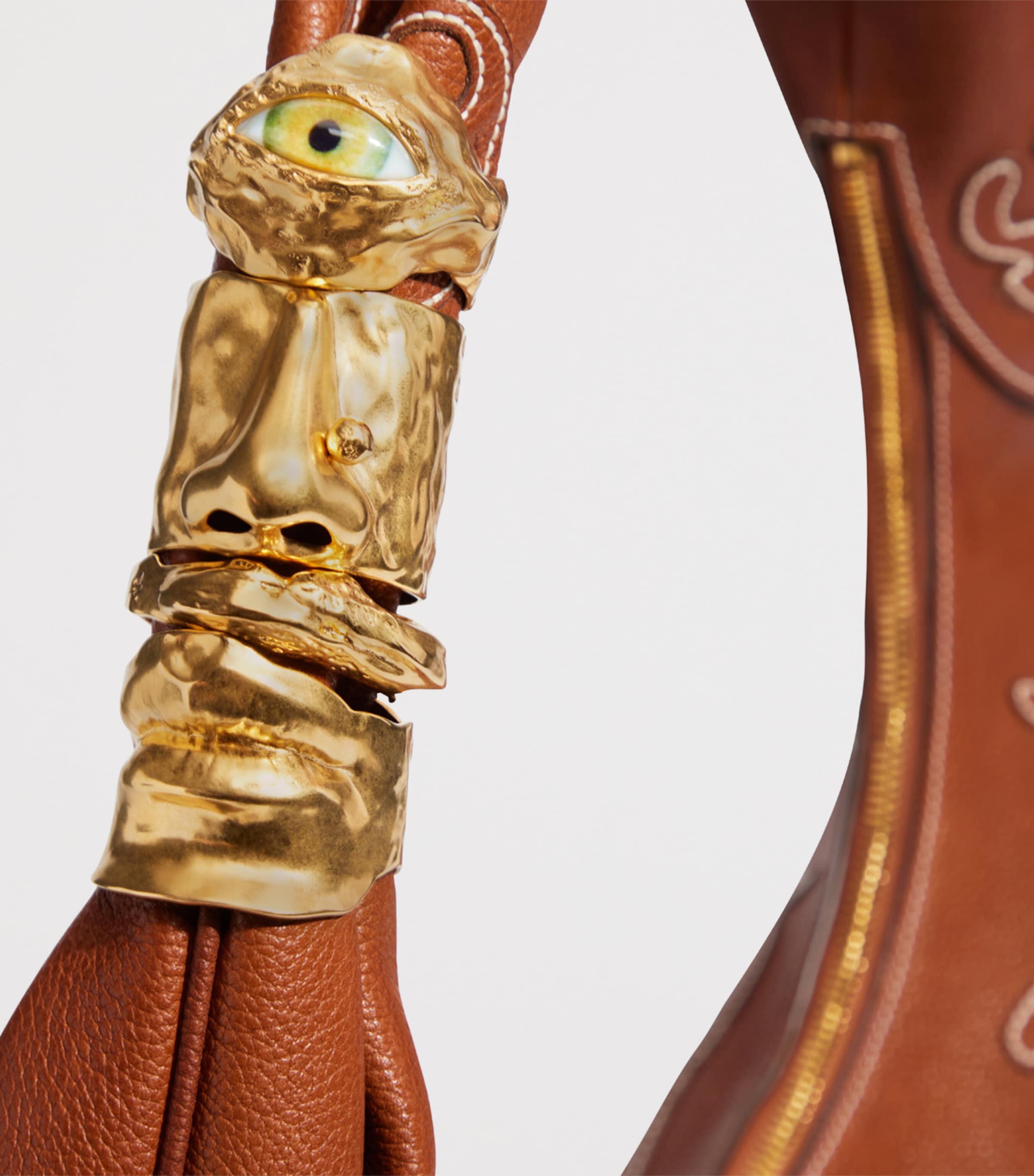 Elsa Schiaparelli pushed the limits of design in the first half of the 20th century, incorporating surrealist elements within the Maison’s ready-to-wear and accessories. Under the creative direction of Daniel Roseberry, Schiaparelli continues to bring the avant-garde factor to the contemporary zeitgeist with pieces such as the Soufflé shoulder bag, which incorporates the signature anatomical hardware around the handle.