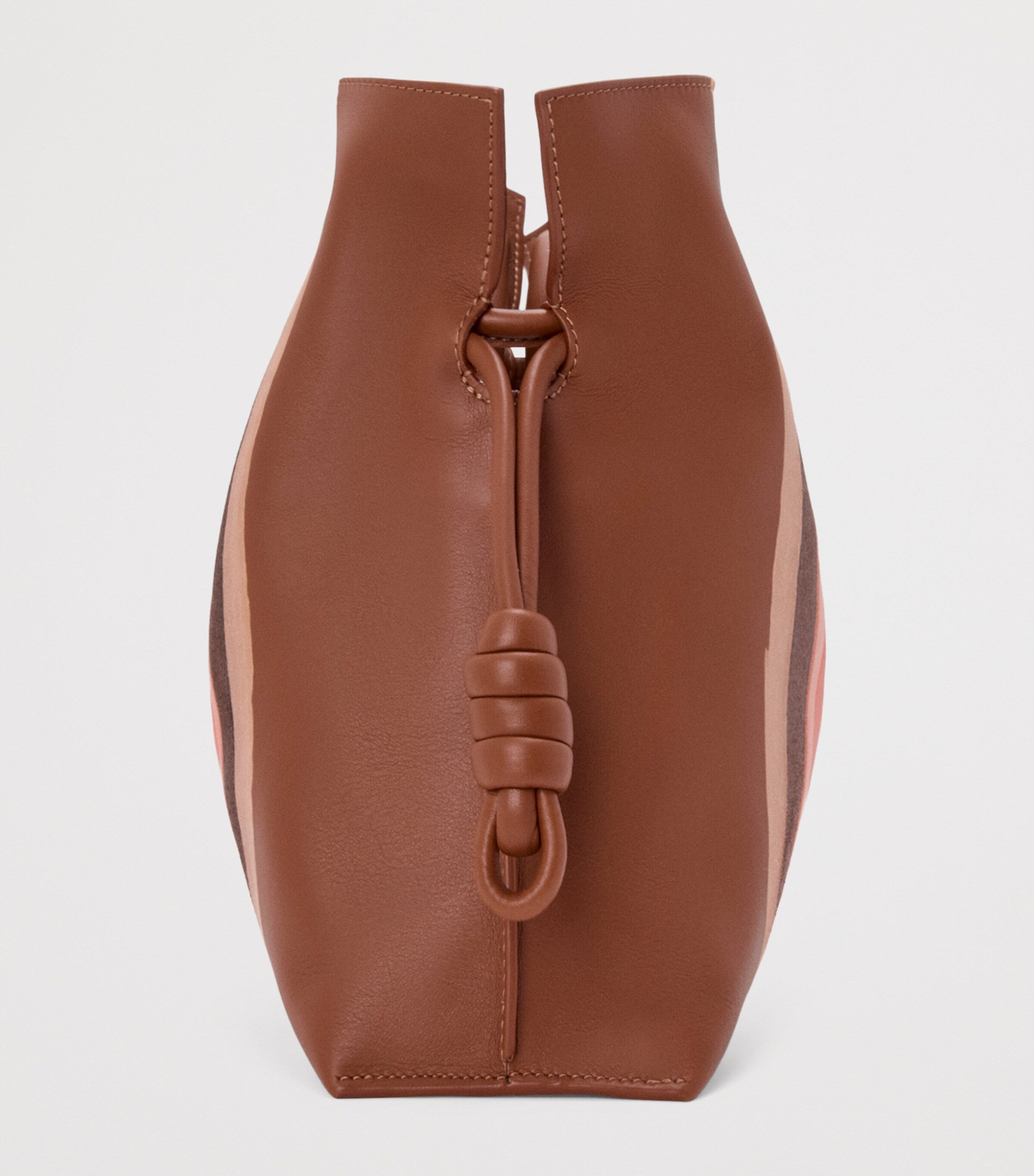 LOEWE Clutch-Tasche aus braunem Leder mit Flamenco-Streifen - Pekannuss-Papageienrosa / OS