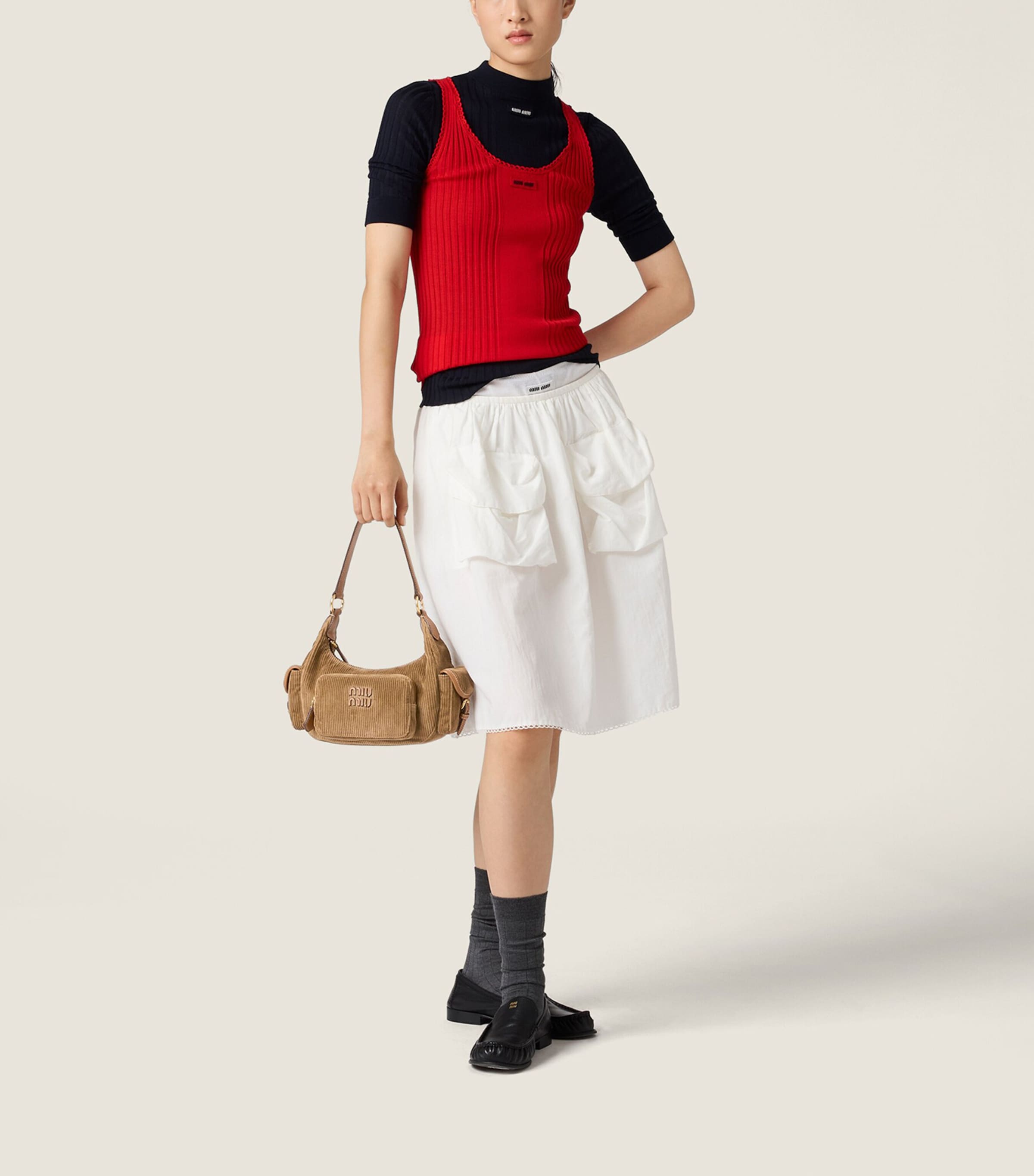 A compact yet elongated silhouette and a vast array of pockets? This bag from Miu Miu heralds the return of the Y2K trend and makes us welcome it once again with open arms. The House knows a thing or two about making a fashion moment its own, and from the ridged corduroy exterior to the embossed logo, this is an unmistakable creation of Miuccia Prada.