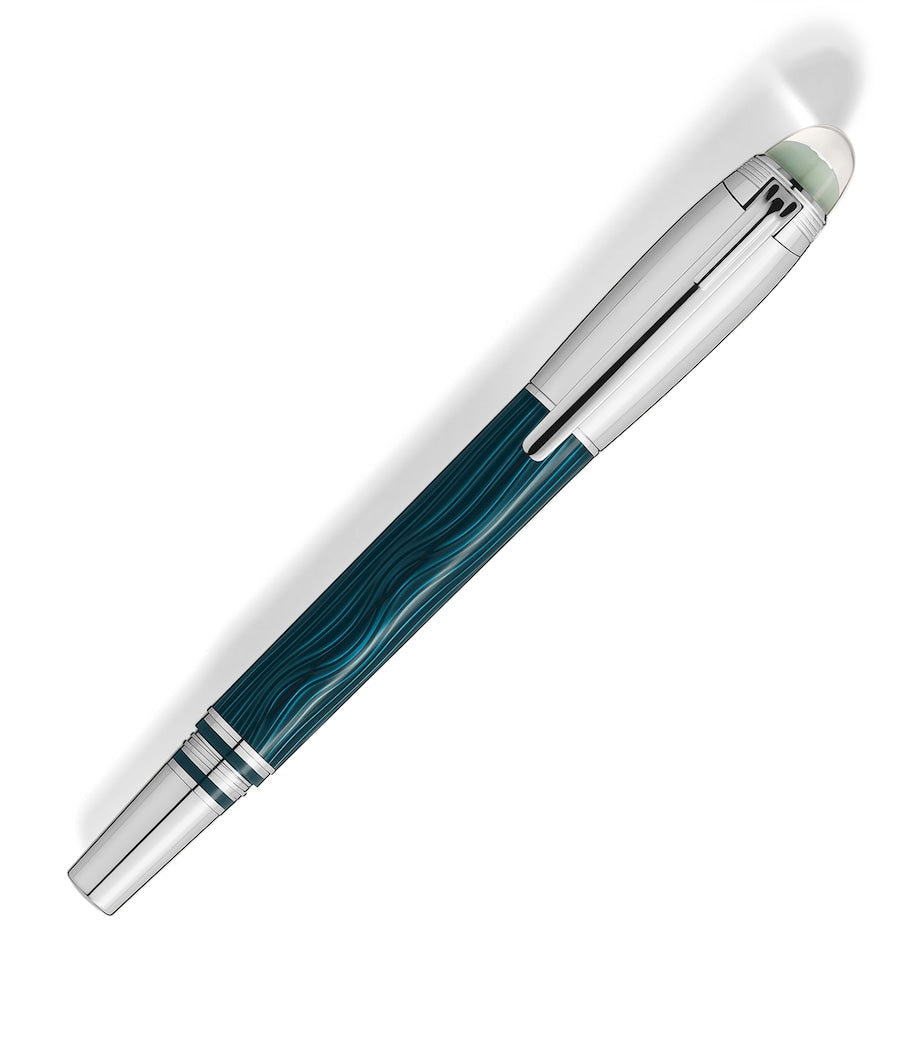 Every Montblanc creation carries the weight of over a century of mastery, with each piece infused with the meticulous savoir-faire that continues to define the House today. The coveted StarWalker PolarGreen collection epitomises this penchant for artistry: designed as an ode to the Northern Lights, the platinum-trimmed fountain pen softly illuminates from its transparent domed cap, while an intricate guilloche wave echoes the ethereal choreography of a winter sky’s aurora.