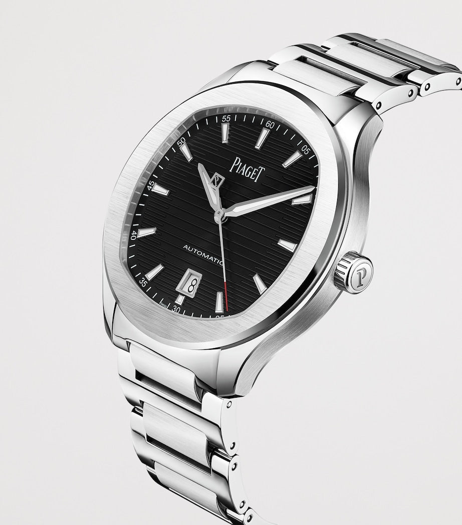 Introduced in 1979, the Piaget Polo Date watch is an integral part of the brand, so much so that the Swiss label once blocked off half of New York City’s famed 5th Avenue so that four cavalrymen from the Piaget Polo team could ride down it. This stainless-steel model embodies the daring, elegance and high standards of its sporting namesake with its cushion-meets-round shape, luminescent hour markers and sleek and textured dial.