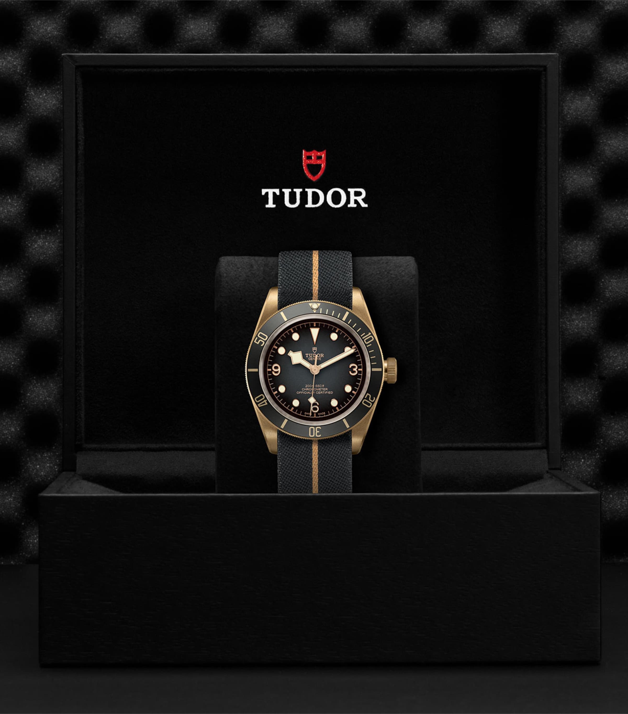 The Black Bay watch draws on over 60 years of experience in luxury watchmaking, featuring the winding crown detail and holes drilled around the horns that were seen in TUDOR'S first generation of watches for divers. Wrapping around the wrist courtesy of a supple leather strap, the elegant essential boasts a bronze finish in reference to the brass used in building old ships and early diving equipment.