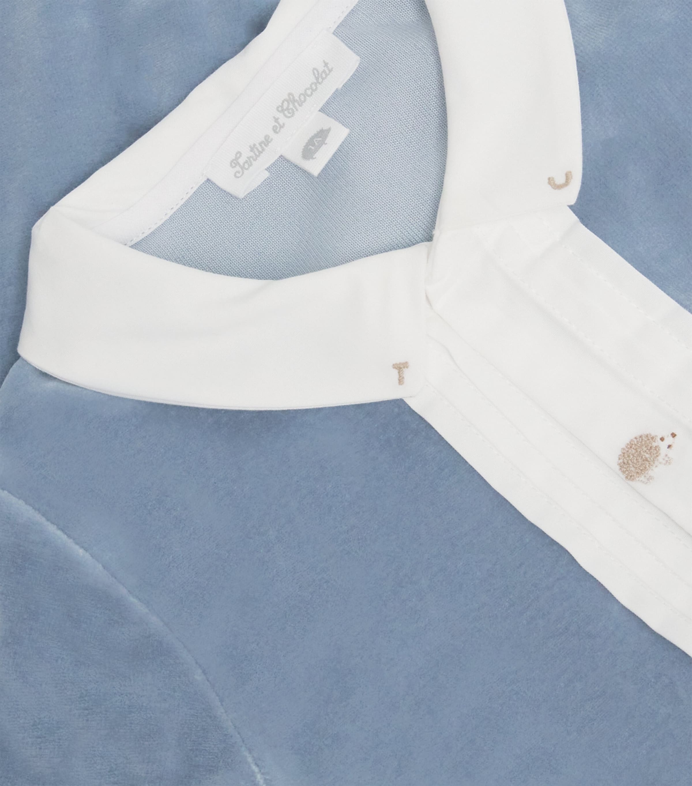 Crafted from a cotton-blend that results in a plush velvet finish, this all-in-one from Tartine et Chocolat is a delightful nighttime choice for little ones. With a pleated central panel and collar, it’s finished with embroidered hedgehogs – to count while drifting off – and the childrenswear label’s initials to the collar.