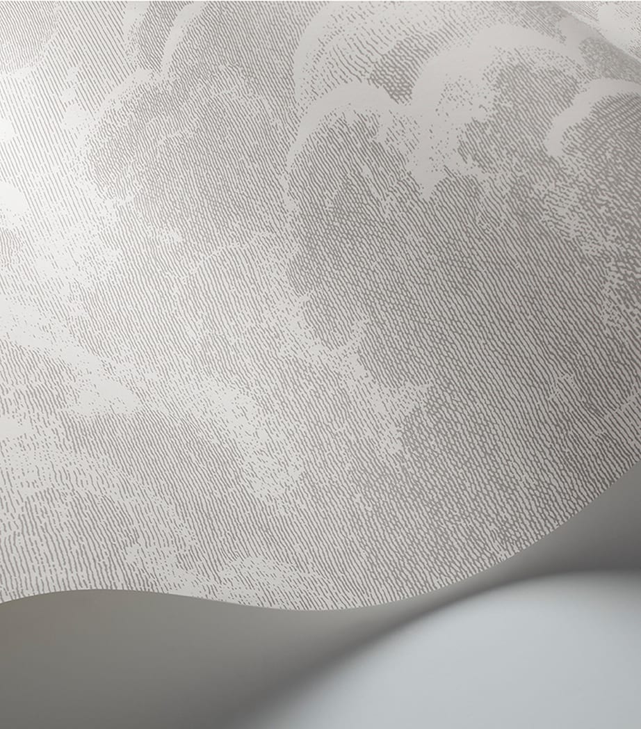Presented by Cole & Son, the Nuvolette pattern is one of Fornasetti’s most enduring designs, embodying the Italian designer’s recurring fascination with dreamlike skies and metallic accents. Delicately etched ‘little clouds’ drift across this textured wallpaper roll, echoing the original Nuvole mural – a tempestuous, rolling landscape perfect for larger entertaining spaces.