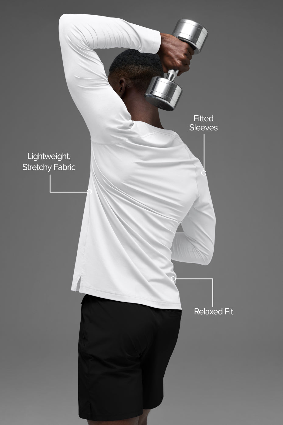 Clean lines, full-range function. The Idol Crewneck Long Sleeve is made from breathable, stretch-infused fabric with an easy, relaxed fit and minimalist finish.