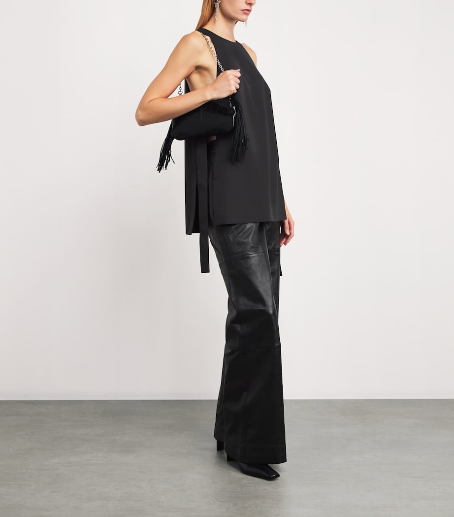 Capturing the playful essence of the Miss M bag through its signature fringing, this elegant and practical clutch version is crafted with fashionable socialites in mind. Sling its detachable chain strap over your shoulder for a ‘90s-nuanced feel, or rest it in the crook of your arm to accentuate its slender, crinkled leather profile.