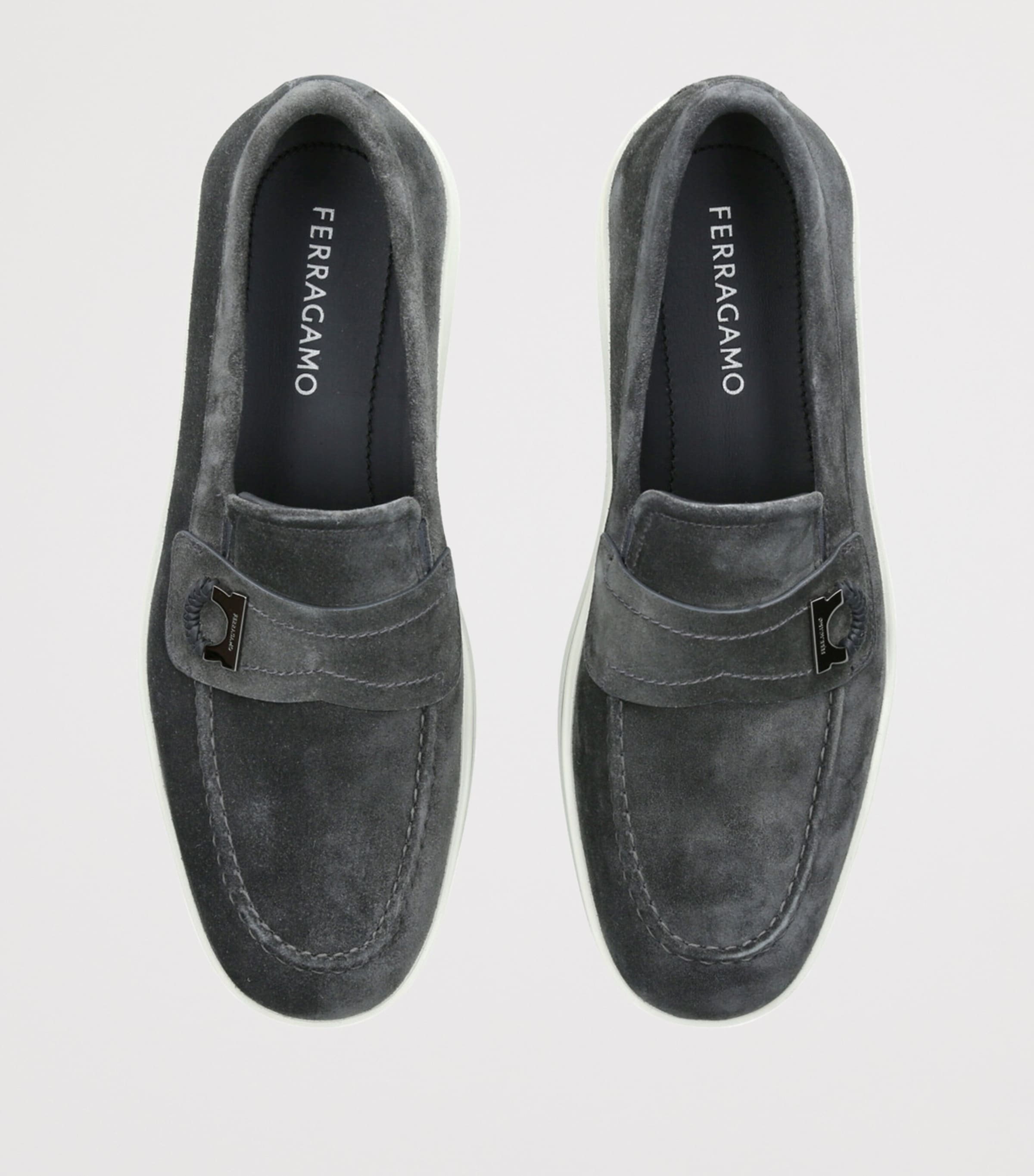 Balancing comfort and refinement, the Tancredi loafers are an expression of Ferragamo's masterful blend of traditional Italian craftsmanship and contemporary innovation. The pair complements a flexible rubber sole with a soft suede upper – adorned with the signature Gancini embellishment inspired by the ornate ironwork of the brand’s historic Florentine headquarters.