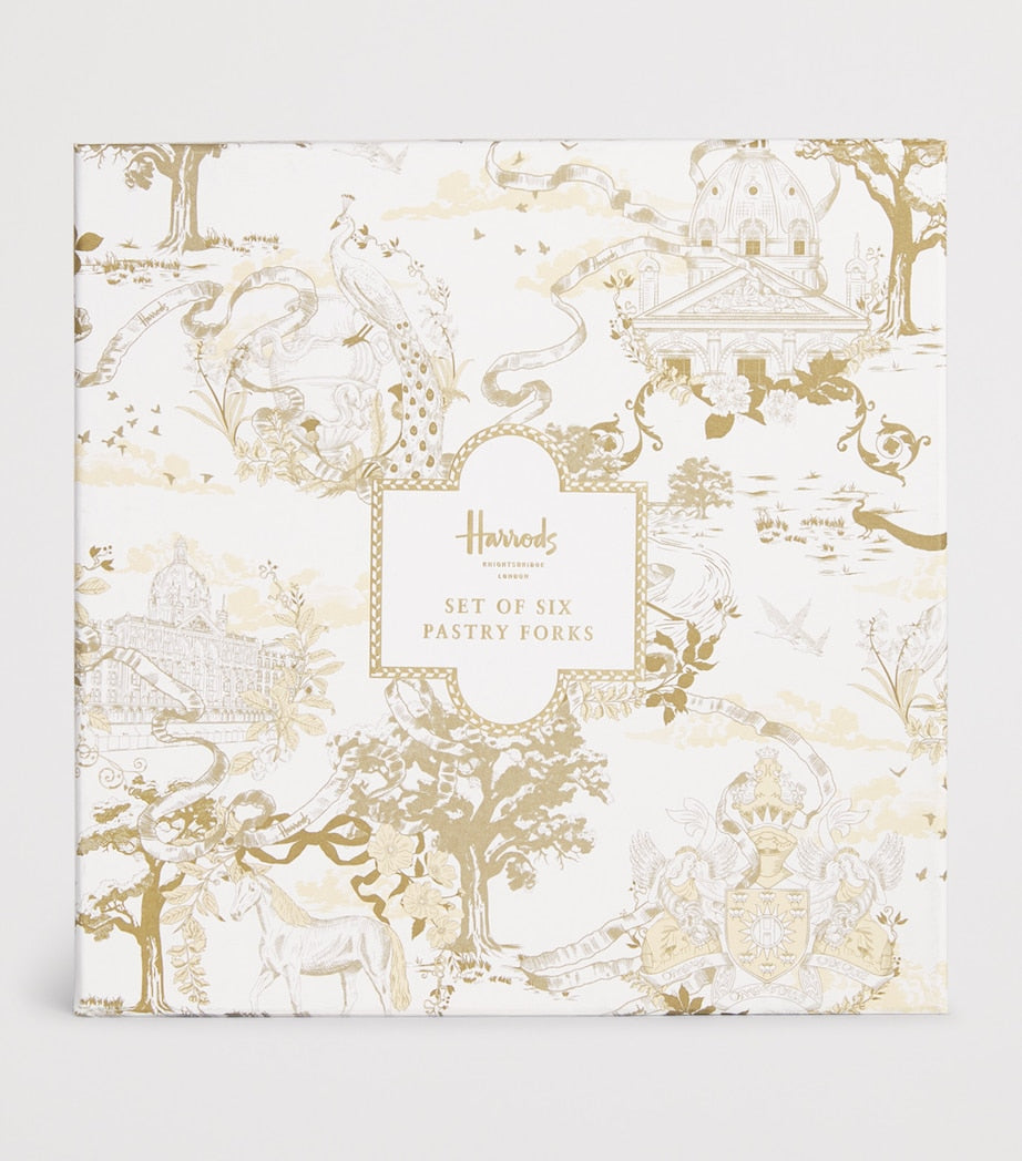 Crafted for those who appreciate life’s finer indulgences, this set of six Harrods pastry forks is the ideal accompaniment to an afternoon tea spread. Whether serving patisserie favourites or delicate slices from our Food Halls, each polished stainless steel piece is elegantly presented in a signature gift box that's perfect for presenting to a loved one or elevating your own tableware.