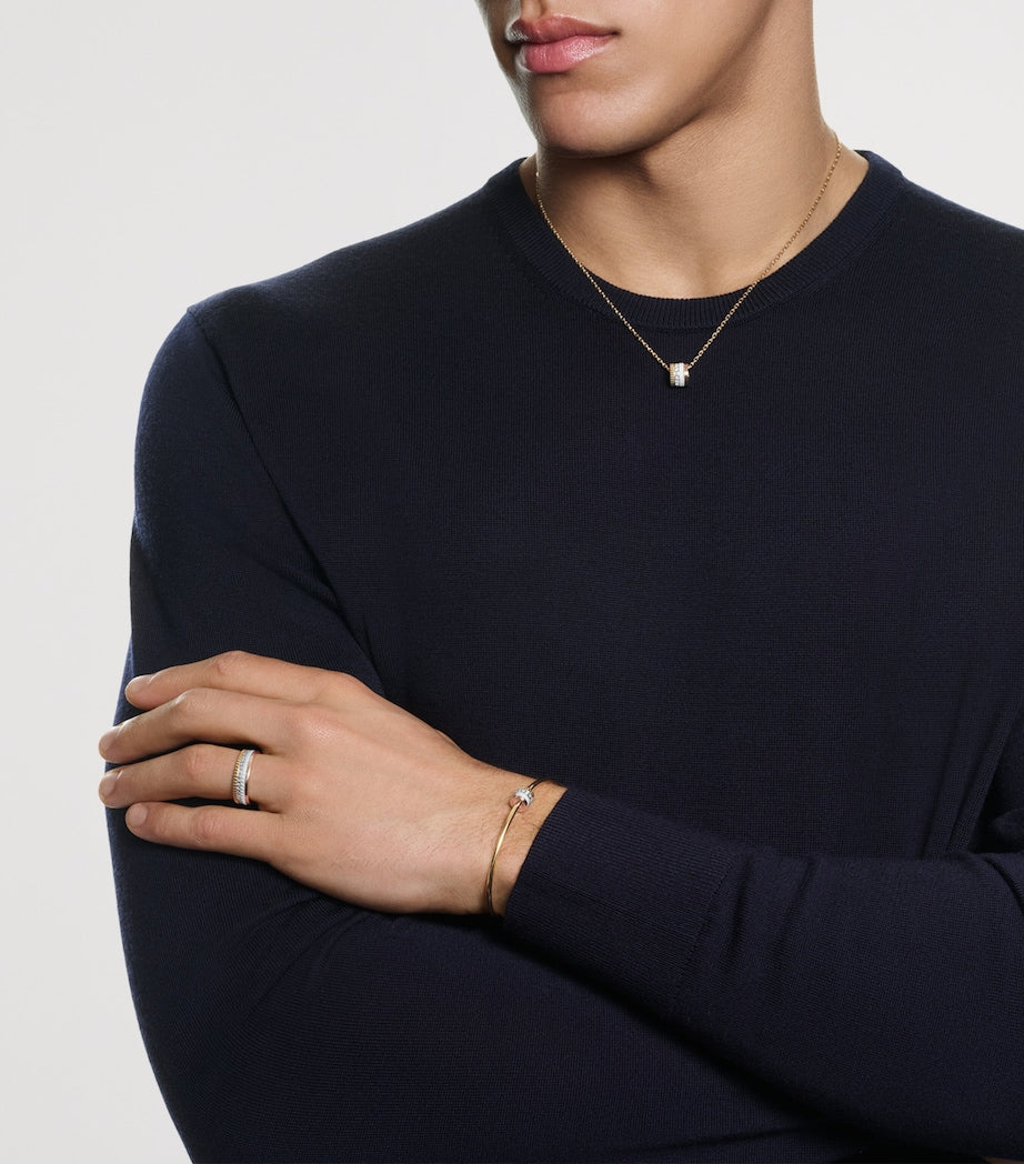 Distinctive textures played out in the Boucheron Quatre collection highlight the expert craftsmanship of the Parisian brand’s master gold sculptors. Crafted with smooth and scalloped bands of 18-karat yellow, white and rose gold which frame a flash white ceramic and 33 round diamonds, the White Edition ring reflects the clean lines of architecture. As a contemporary statement, this ornate piece will stand out among cherished fine jewellery.