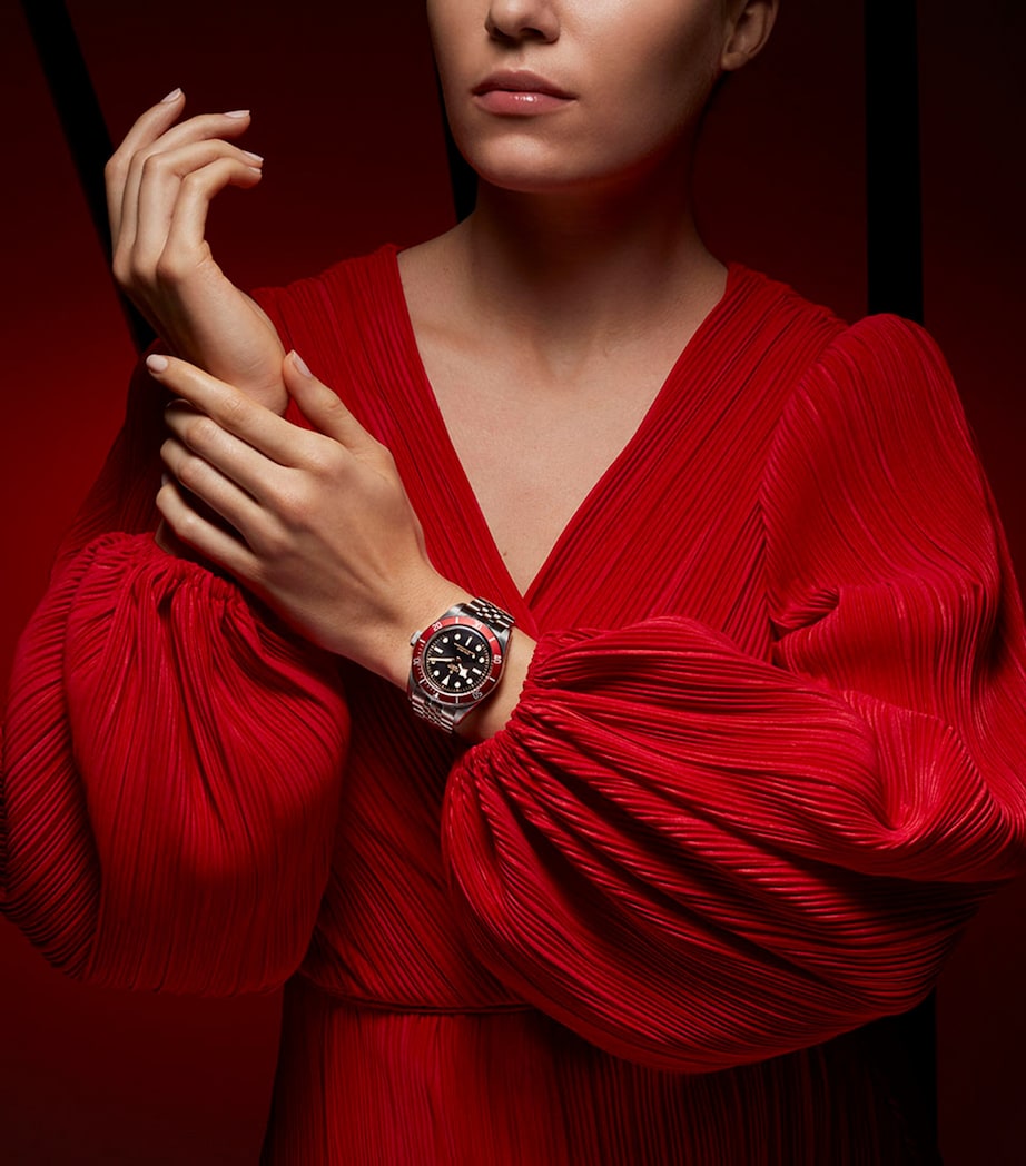 Debuted in 2012, the Black Bay collection redefines Tudor’s Submariner timepiece, presenting a modern take on its classic design language while keeping iconic touches such as the ‘60s Snowflake hands in play. This iteration of the watch combines a sunray-finished round dial with an understated stainless steel bracelet. As a final flourish, the brand’s signature red hue draws attention to its bezel.