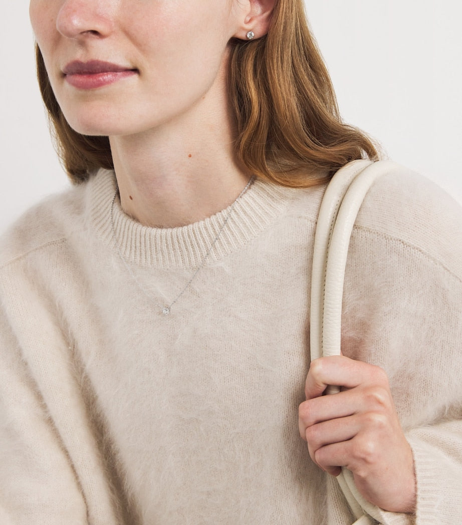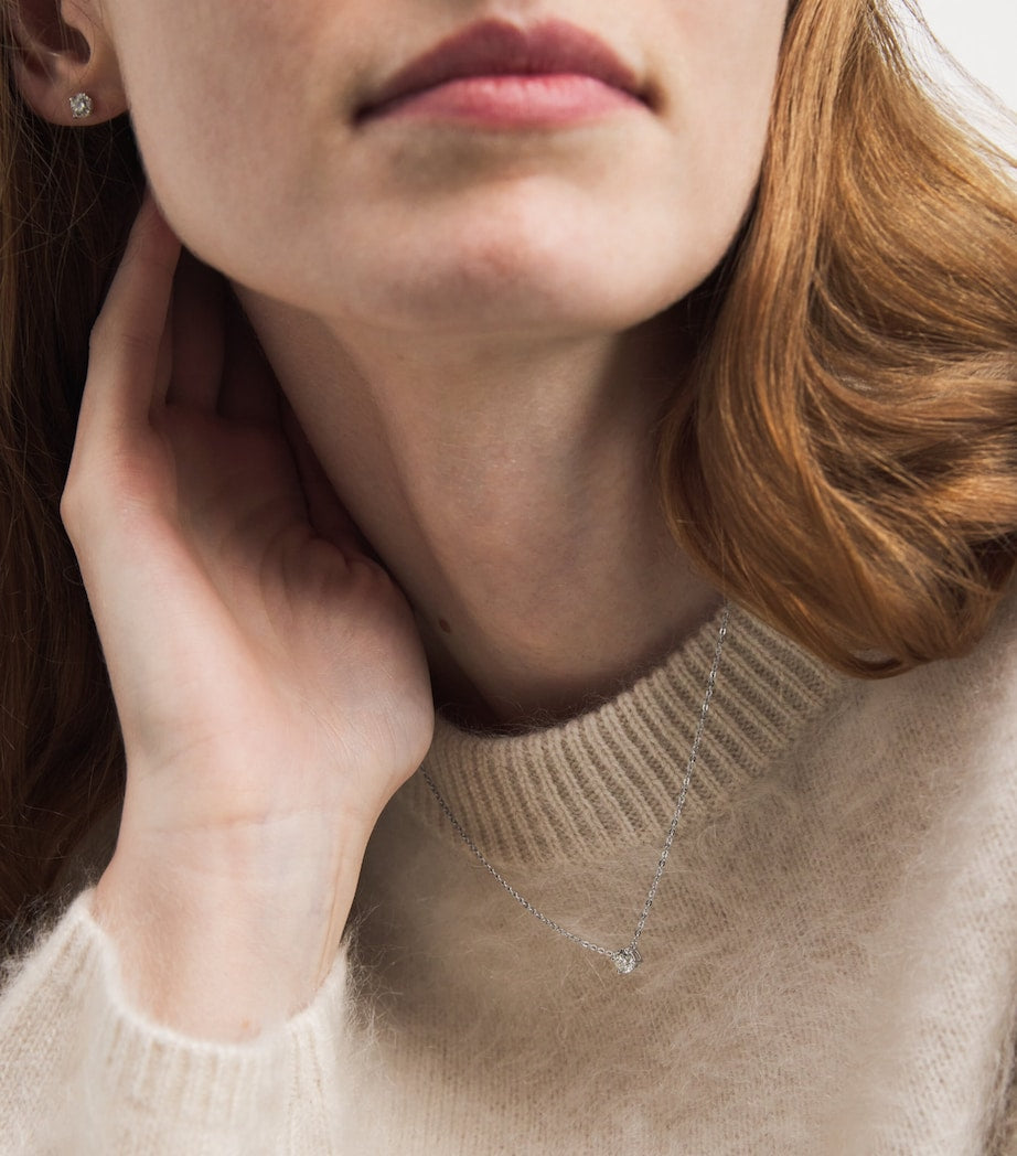 Ob solo getragen als Hommage an den Minimalismus oder kombiniert mit anderen zarten Schmuckstücken aus der Harrods-Kollektion – diese Halskette ist ein meisterhaftes Beispiel für Goldschmiedekunst. Die leichte, bewegliche Kette ist aus massivem 18-karätigem Weißgold gefertigt und trägt im Zentrum einen runden weißen Diamanten, der sicher zwischen vier Krappen gefasst ist.