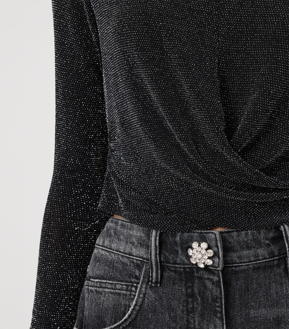 AllSaints' Vorliebe für monochrome Farbkombinationen hat die Marke seit über 20 Jahren zu einem Maßstab für Grunge-inspirierte Mode gemacht. Hier wird der gedeckte Farbton des Skylar Crop-Tops durch die Zugabe von Metallic-Fäden belebt, was einen schimmernden Effekt erzeugt, der durch die gedrehte Vorderseite noch verstärkt wird.