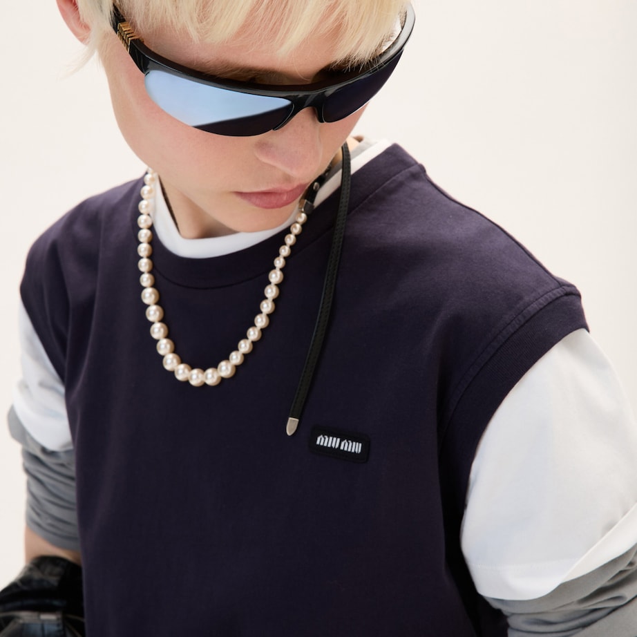 Die neueste Kollektion von Miu Miu besticht durch eine erfrischende Schlichtheit. Sie verzichtet auf den oft in Konfektionsmode anzutreffenden Intellektualismus und kreiert stattdessen bewusst alltagstaugliche Stücke. Diese Baumwoll-T-Shirts sind ein gutes Beispiel dafür: Sie lassen sich sowohl untereinander als auch mit Röcken und Hosen perfekt kombinieren.