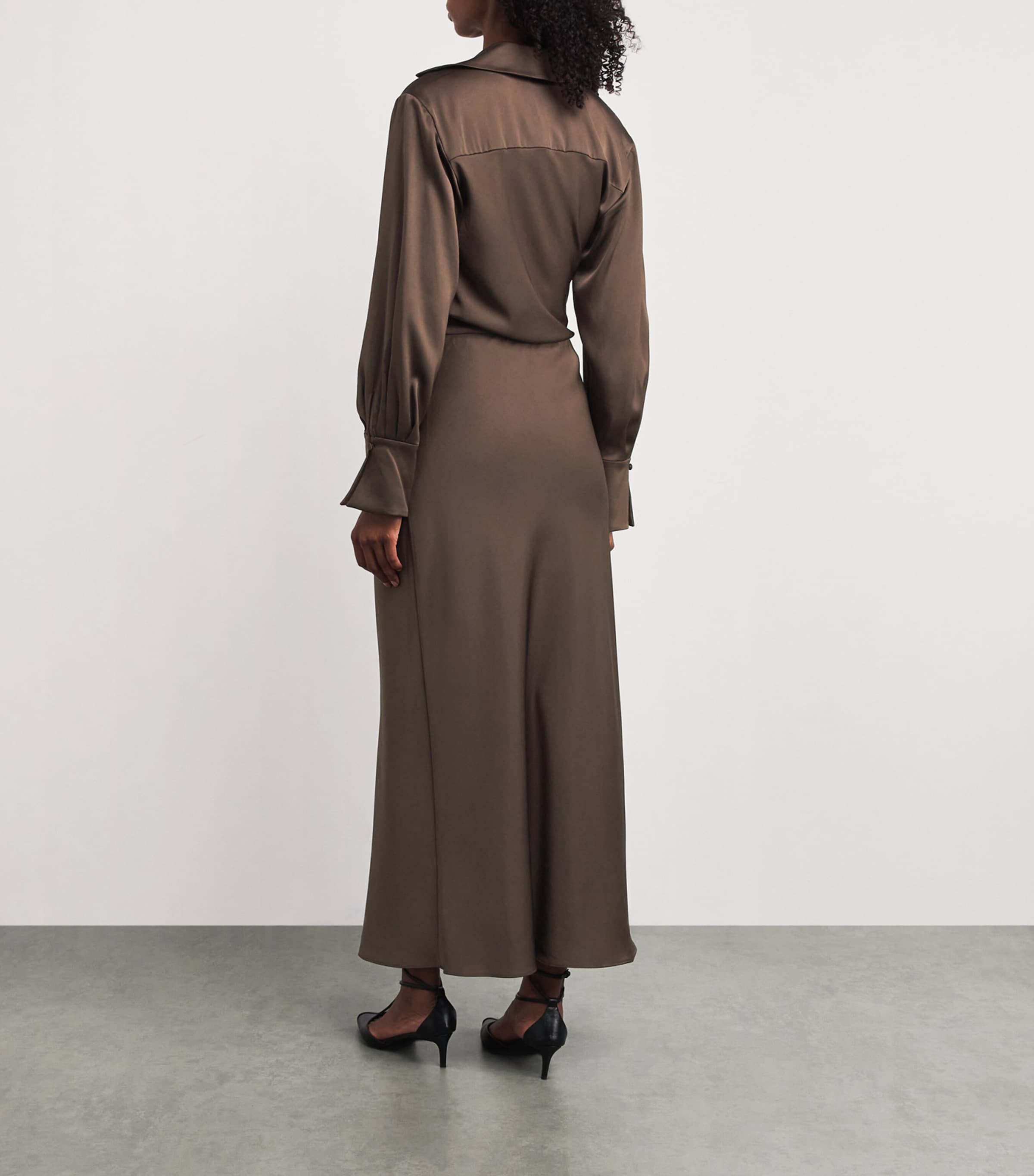 Talita Midikleid aus Satin mit Drapierung, Kakao