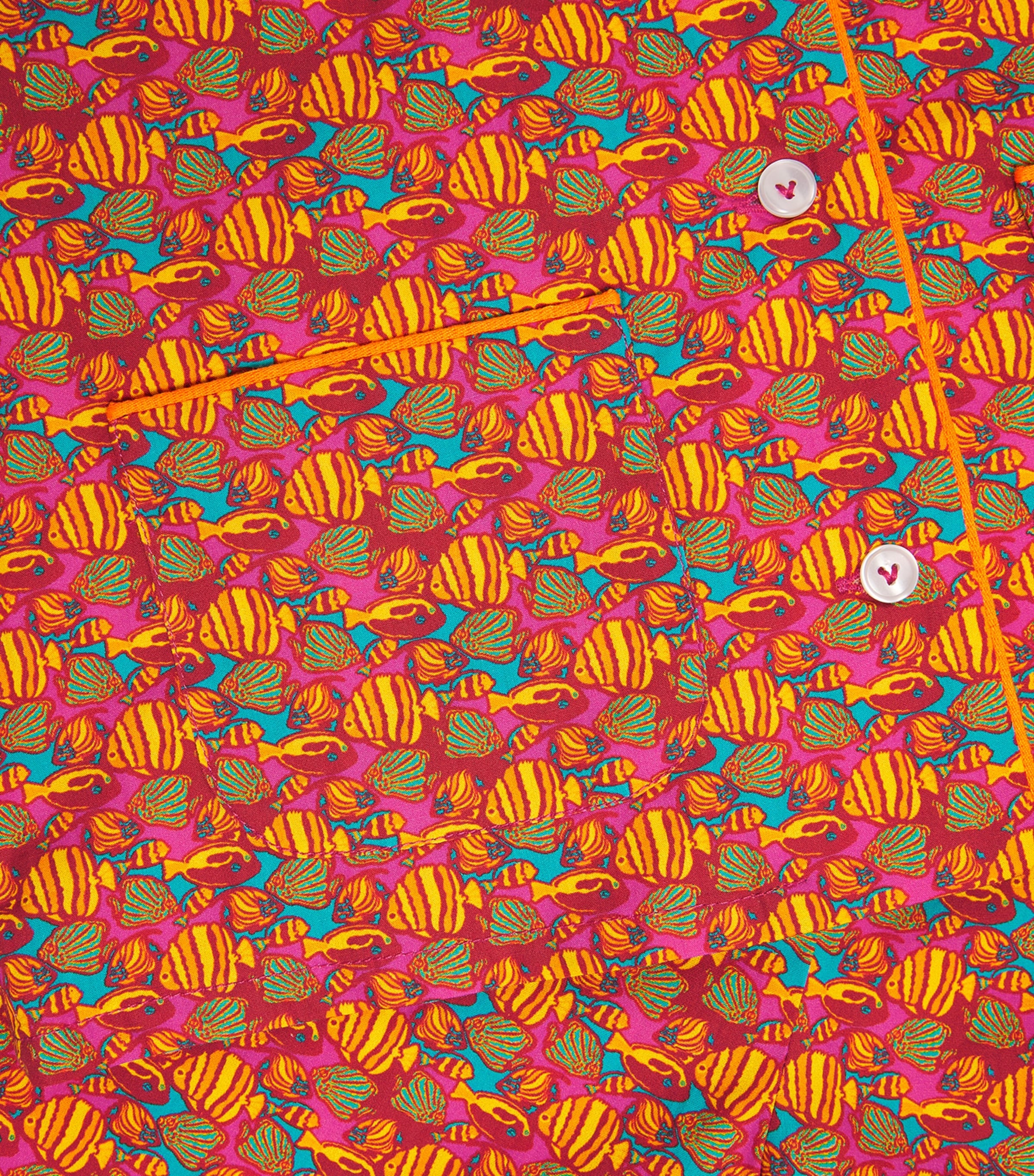 Vilebrequin’s ocean-inspiration is plain to see on this pyjama set, with a vibrant print of tropical fish overlapping to provide a vivid spectacle. The brand’s signature turtle is embroidered on both the top and bottoms, with ruffled trouser hems and shirt sleeves adding to the sense of whimsy.