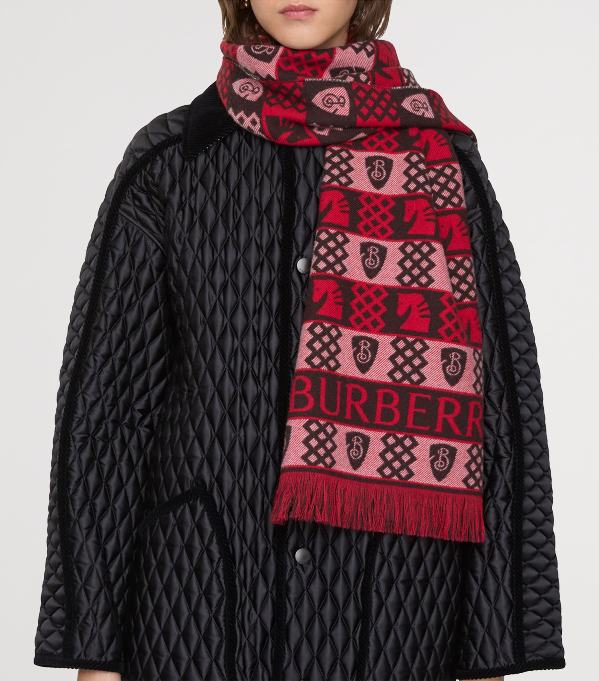 Roter Wollschal mit Fair-Isle-Schachmuster - Beitrag rot / OS