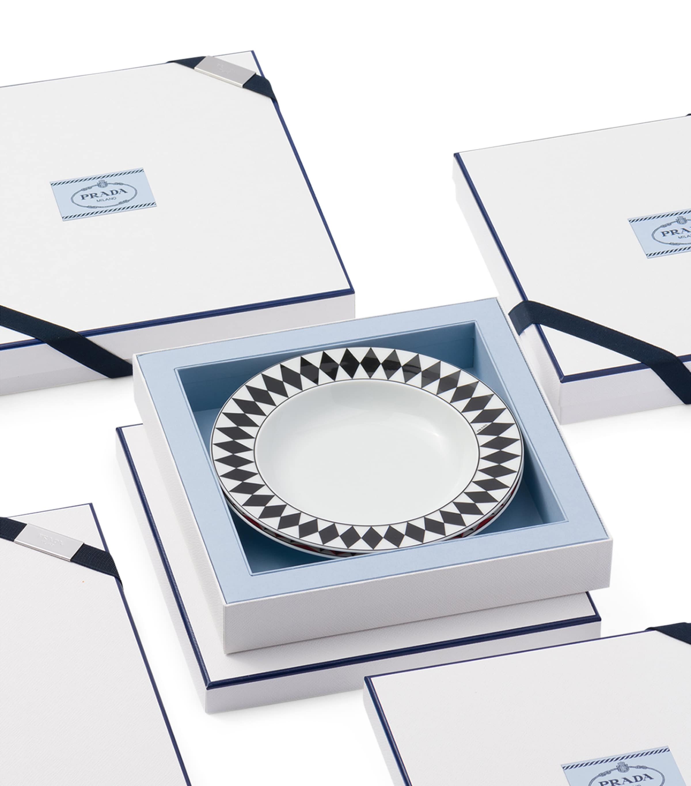 Set of 2 Porcelain Chequerboard Soup Plates (22cm)